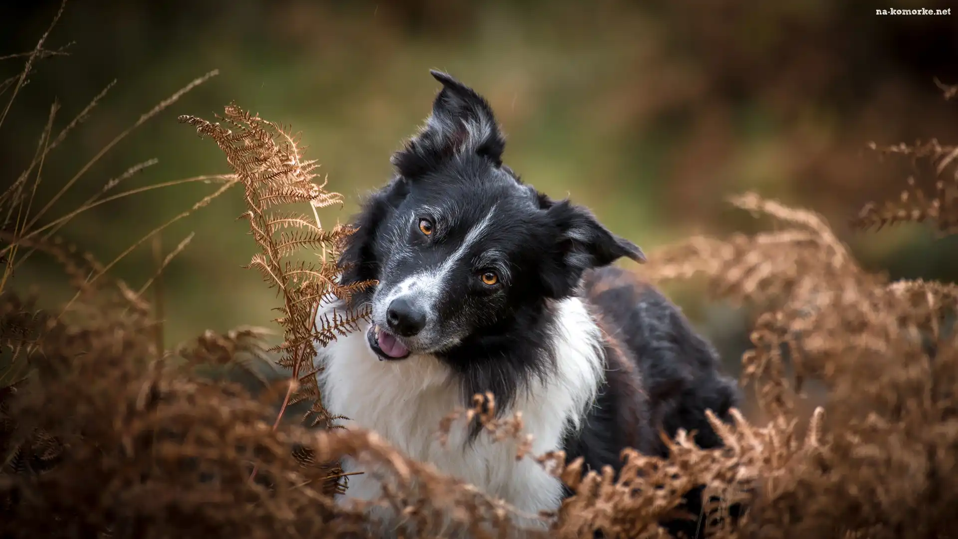 Paprocie, Biało-czarny, Pies, Border collie, Uschnięte na Komórkę