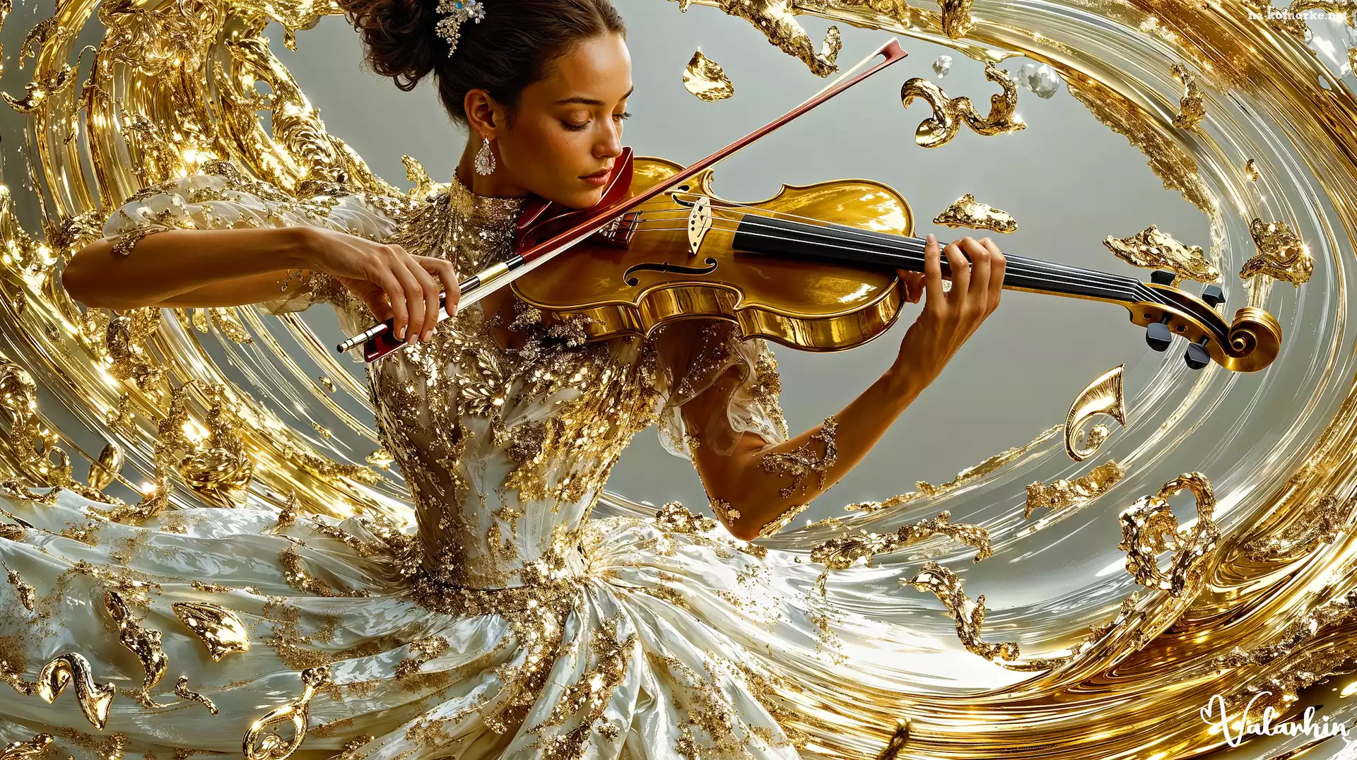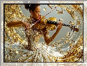 Kobieta, Suknia, Skrzypce, Biało-złota, Grafika AI na Komórkę