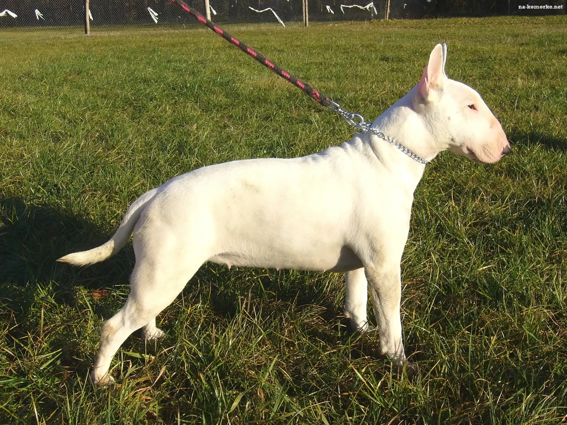 Bulteriery Łata, Biały, Bulterier, Głowa, Język Biały, Bulterier Las, Pies, Bulterier, Pień, Ściółka Pies, Bulterier, Dywan Biały, Bulterier, Trawnik
