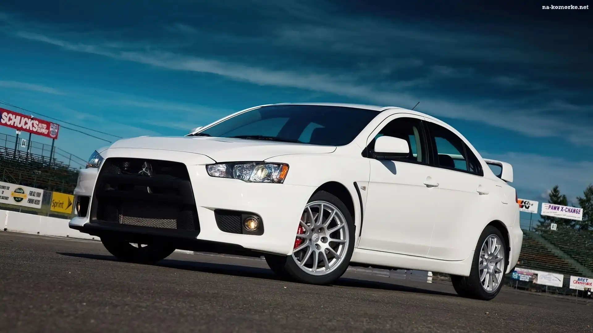 Biały, Evolution, Samochód, Mitsubishi Lancer na Komórkę