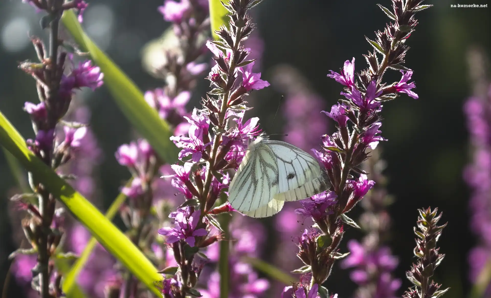 Kwiaty, Biały, Motyl, Bielinek, Fioletowe na Komórkę