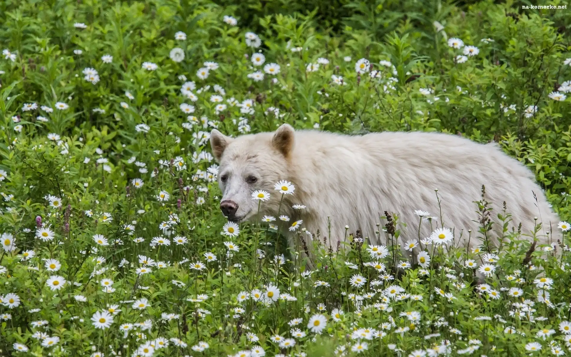 Biały, Kwiaty, Niedzwiedz, Łąka na Komórkę