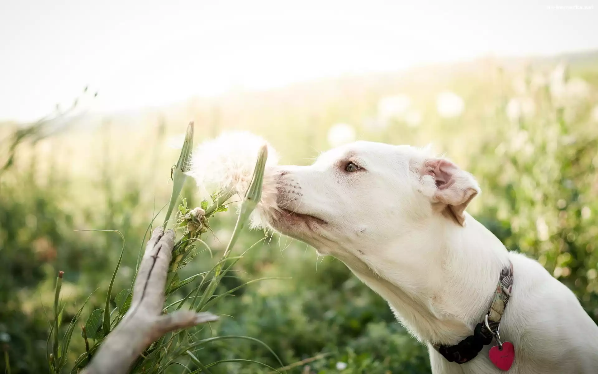 Biały, Dmuchawiec, Pies, Obroża na Komórkę