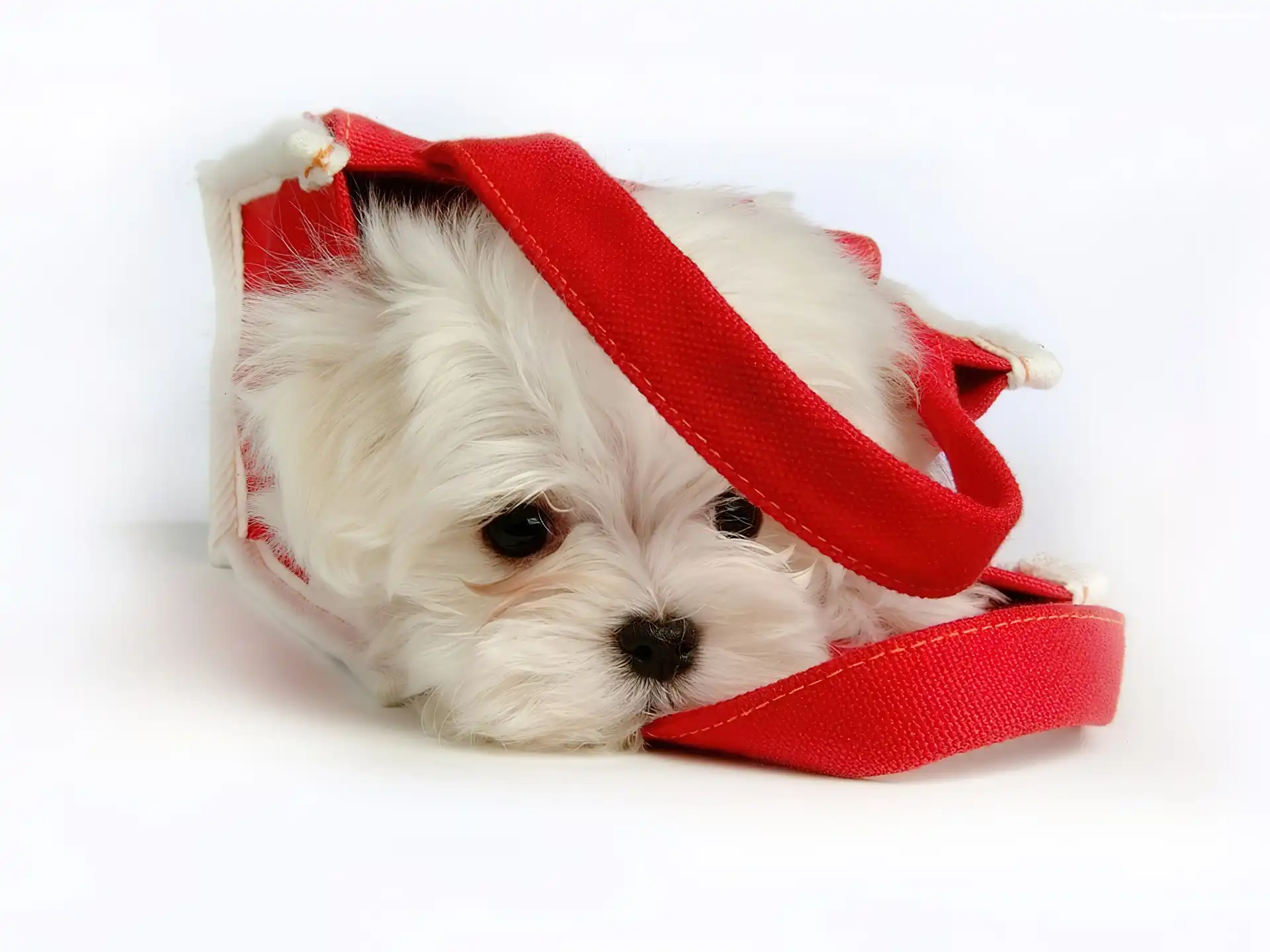 Biały, Torba, Szczeniaczek, Czerwona na Komórkę