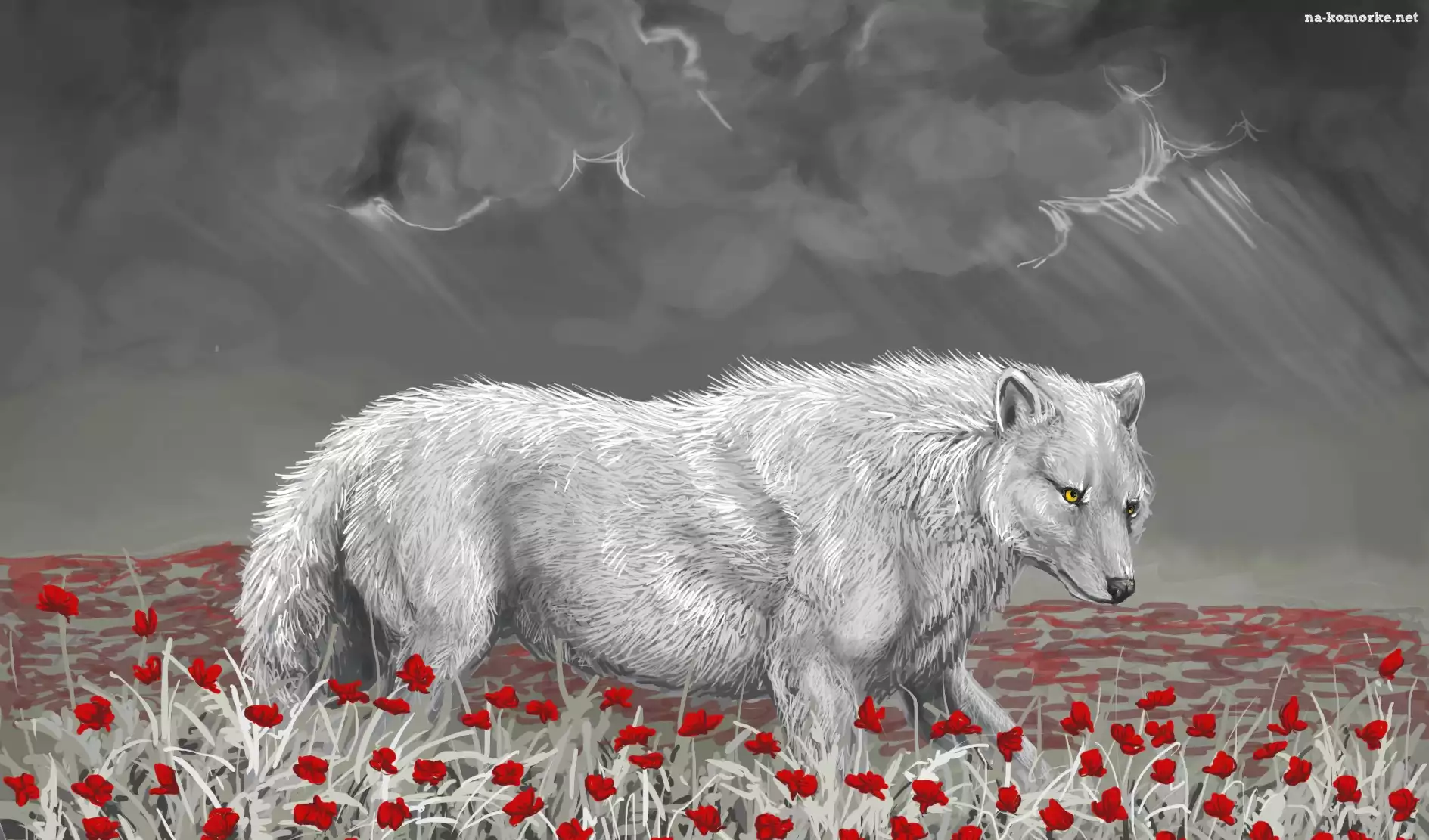 Biały, Kwiatki, Wilk, Czerwone na Komórkę