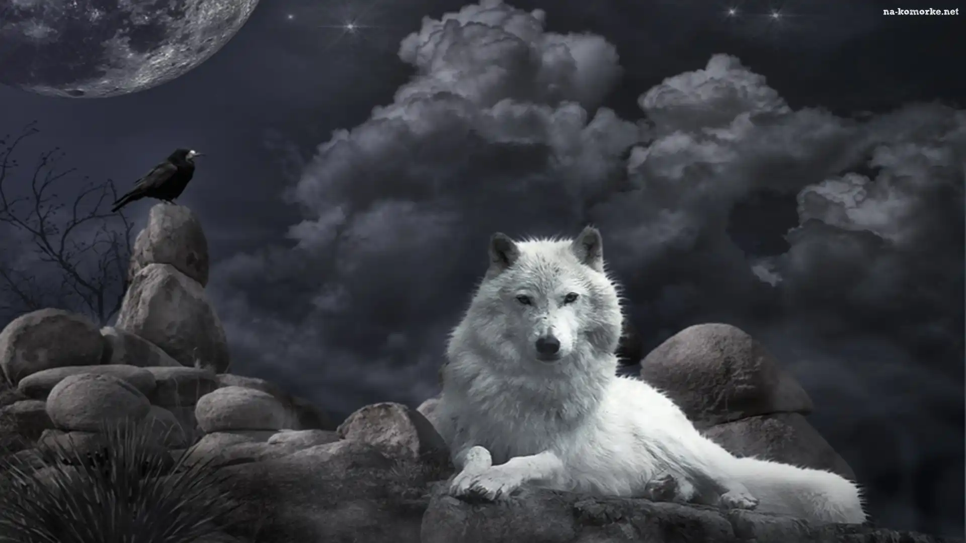 Biały, Skały, Wilk, Kruk na Komórkę