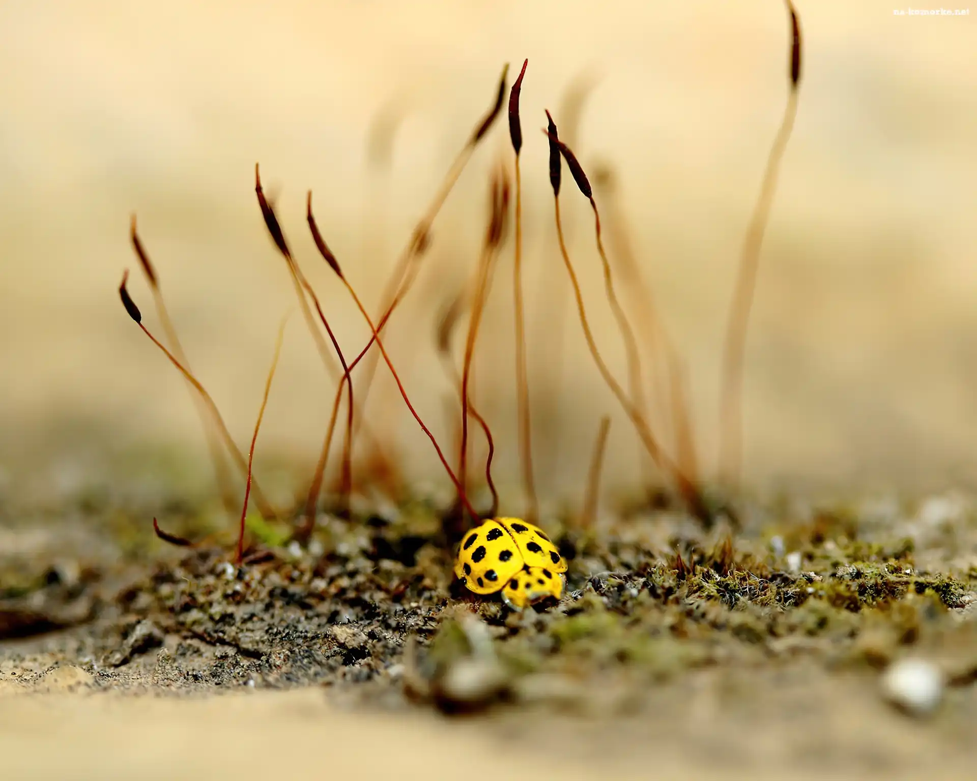 Żółta, Trawy, Biedronka, Suche na Komórkę