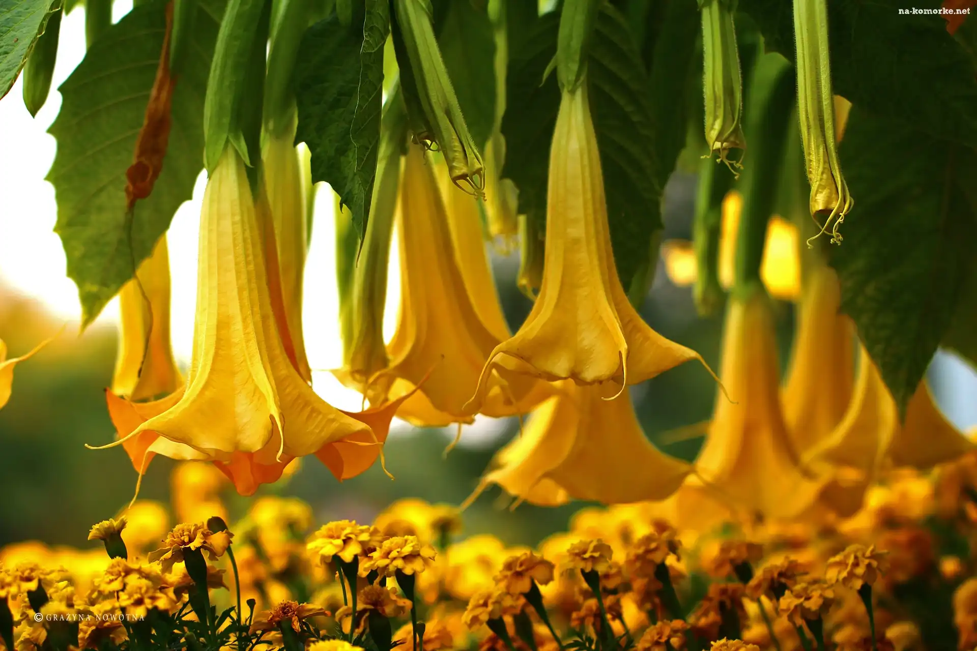 Bieluń, Kwiaty, Aksamitka, Żółte na Komórkę