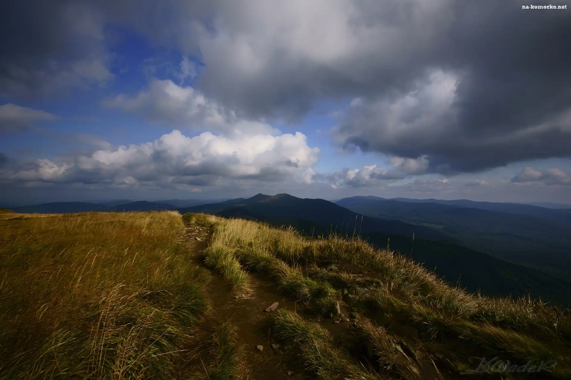 Bieszczady, Chmury, Góry, Trawa na Komórkę