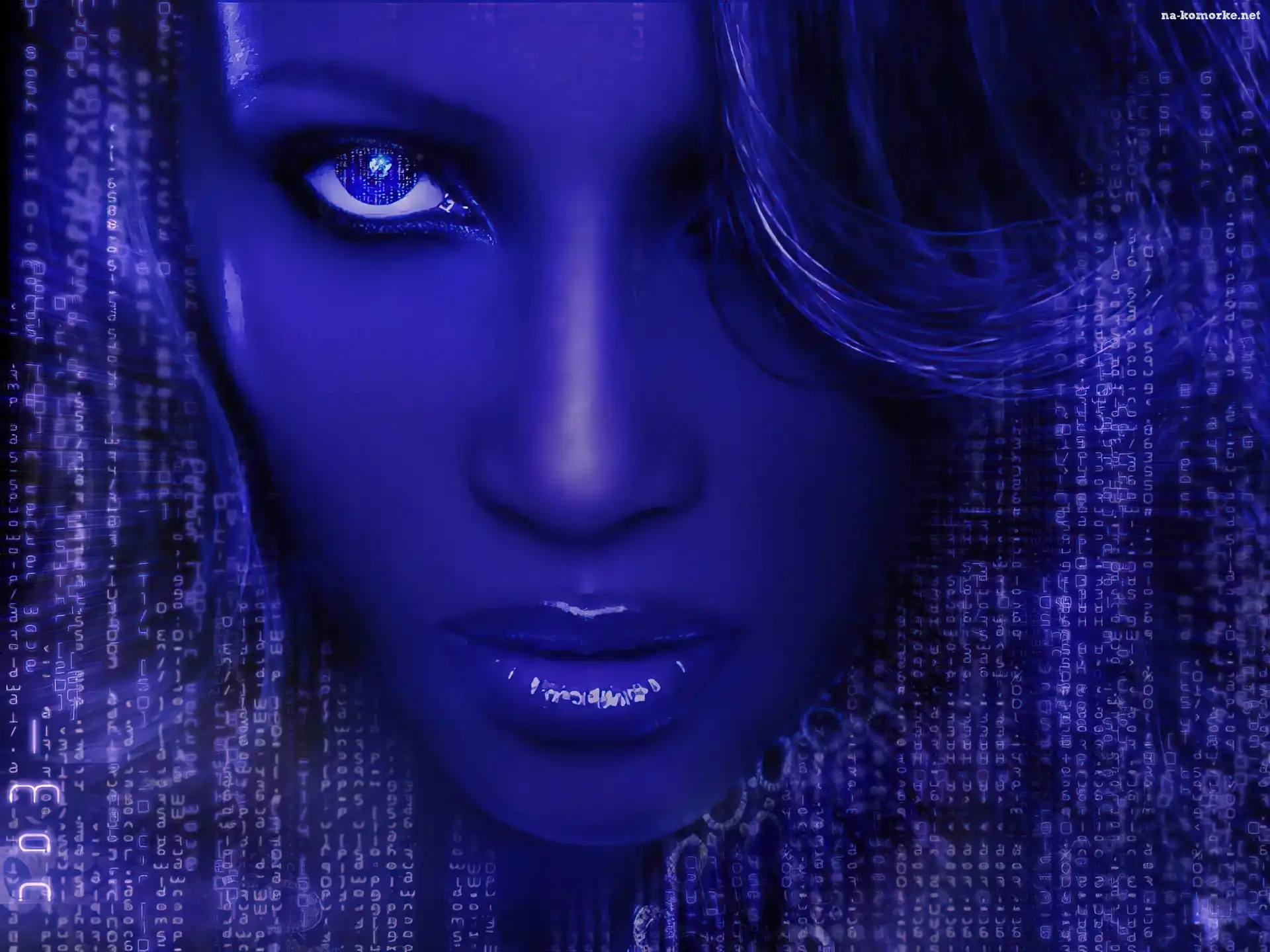 Niebieska, Blask, Oczu, Twarz, Kobiety, Błyszczące, Usta na Komórkę