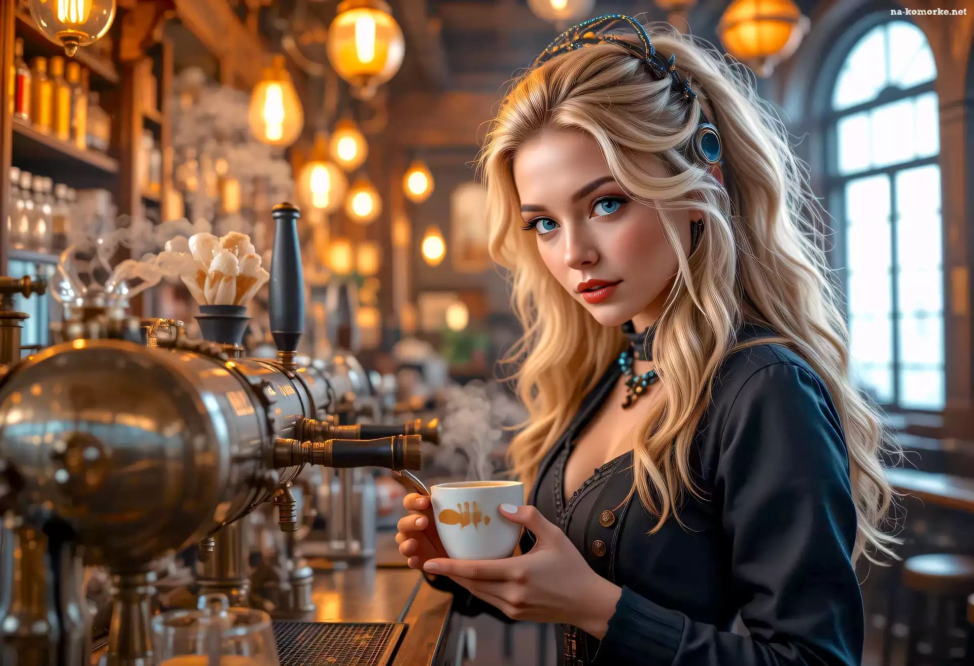 Kobieta, Kawa, Kawiarnia, Blondynka, Grafika AI na Komórkę