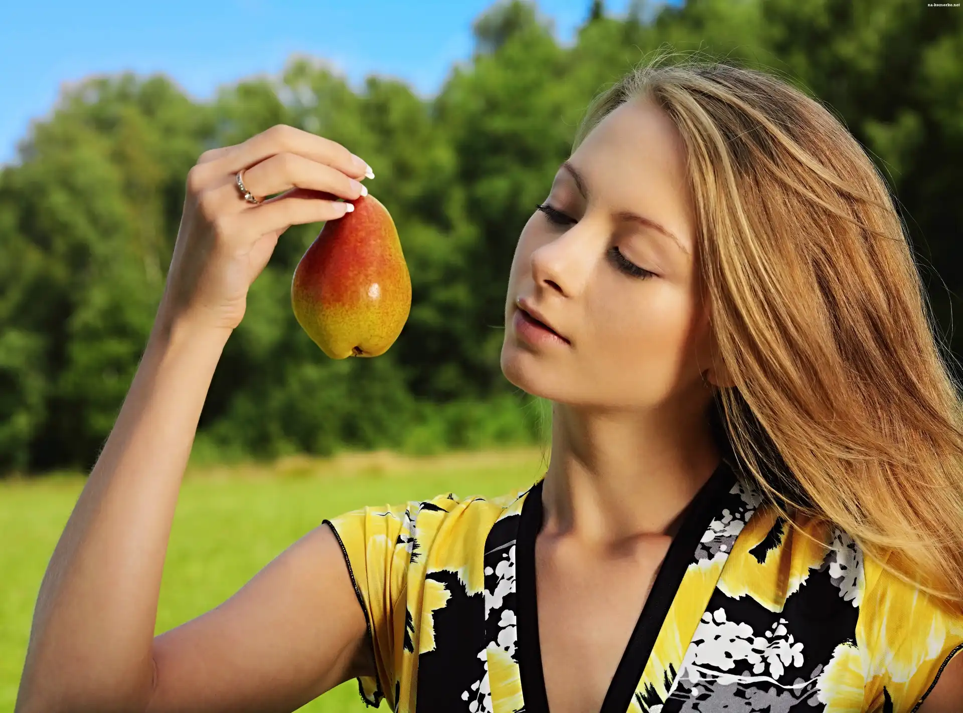 Dziewczyna, Blondynka, Gruszka na Komórkę