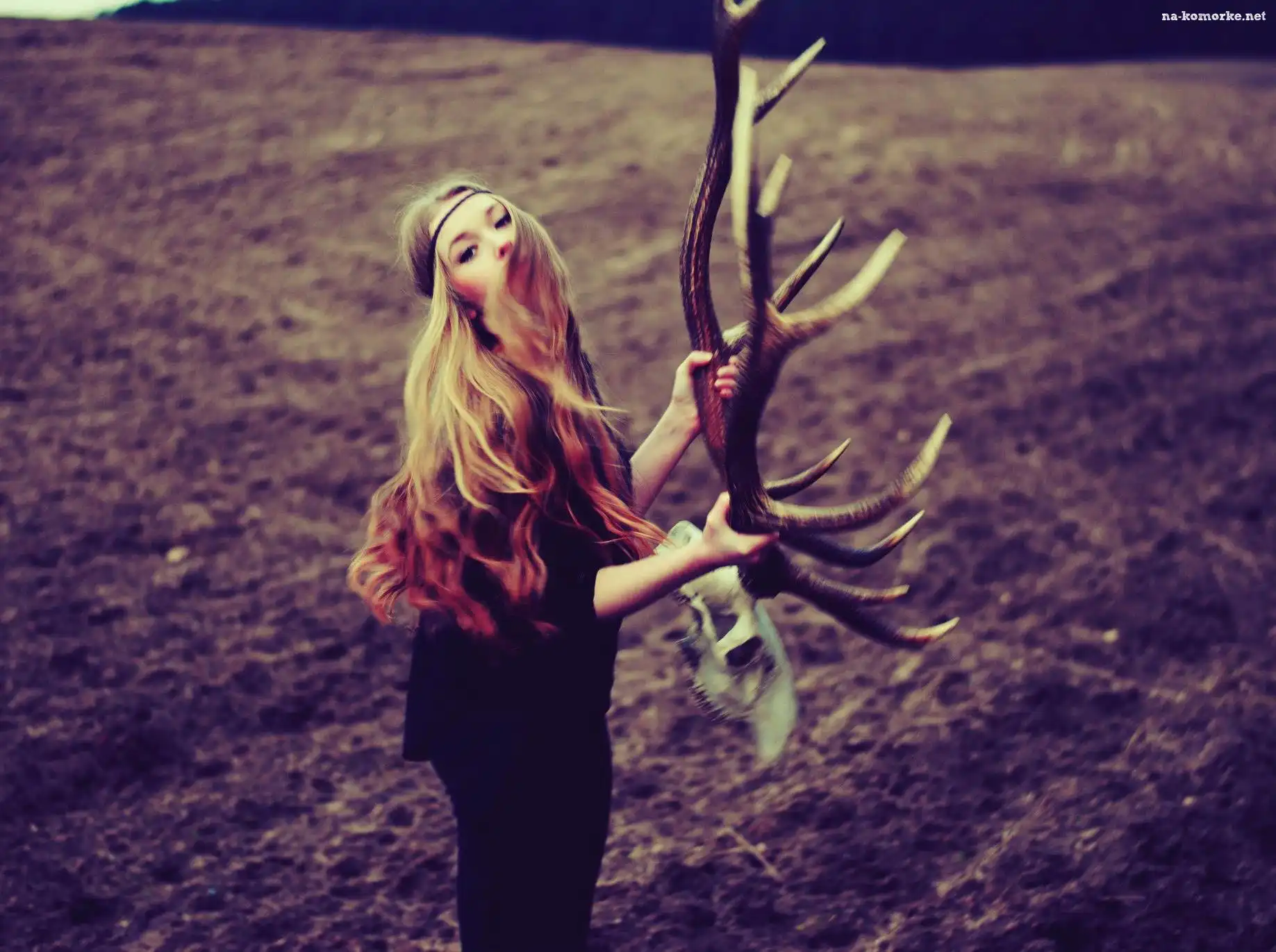 Kobieta, Blondynka, Poroże na Komórkę
