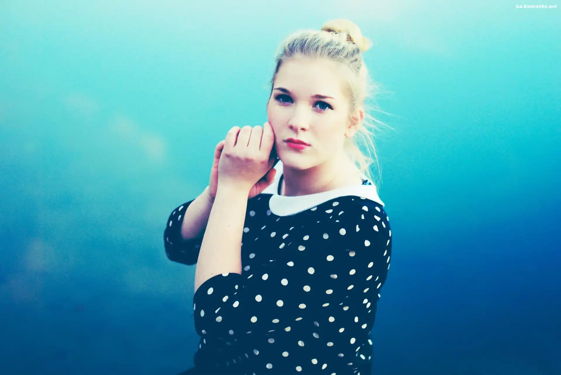 Kobieta, Blondynka, Spojrzenie na Komórkę