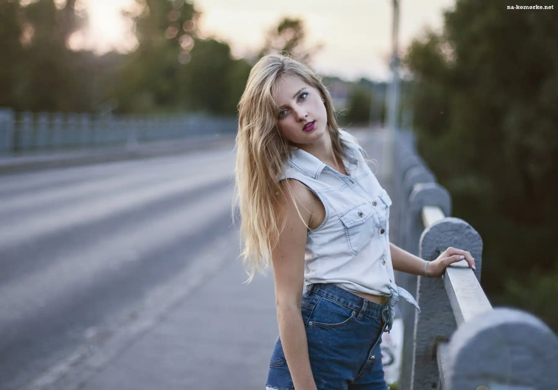 Kobieta, Blondynka, Szorty na Komórkę