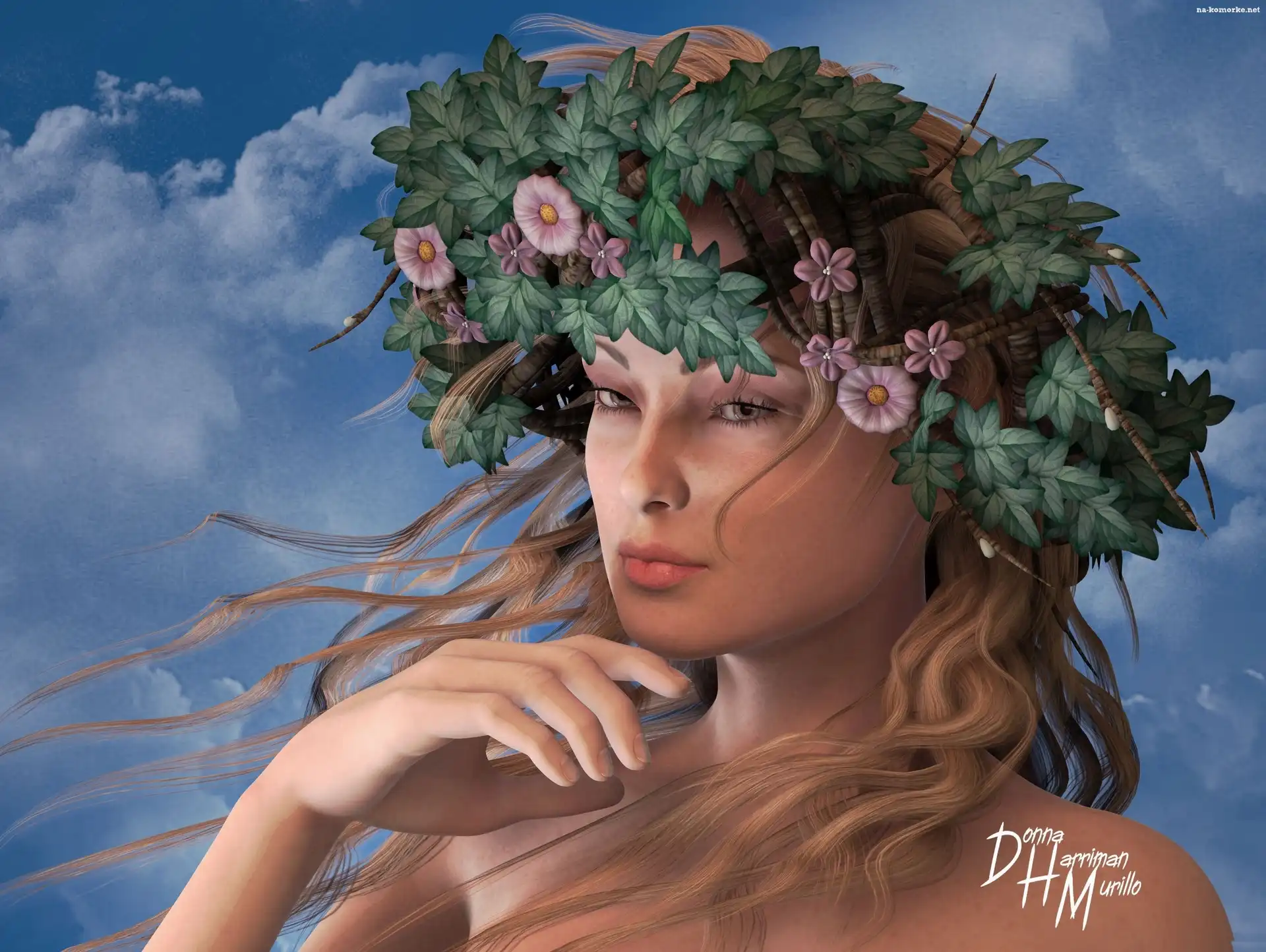 Kobieta, Blondynka, Wianek na Komórkę