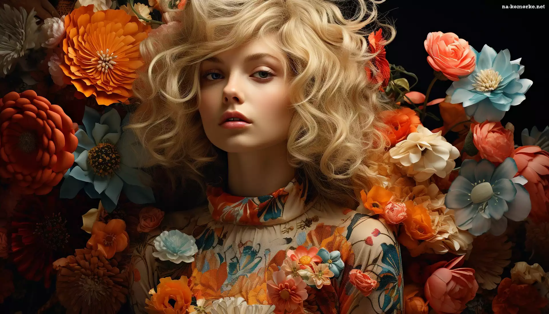 Loki, Kwiaty, Kobieta, Blondynka na Komórkę