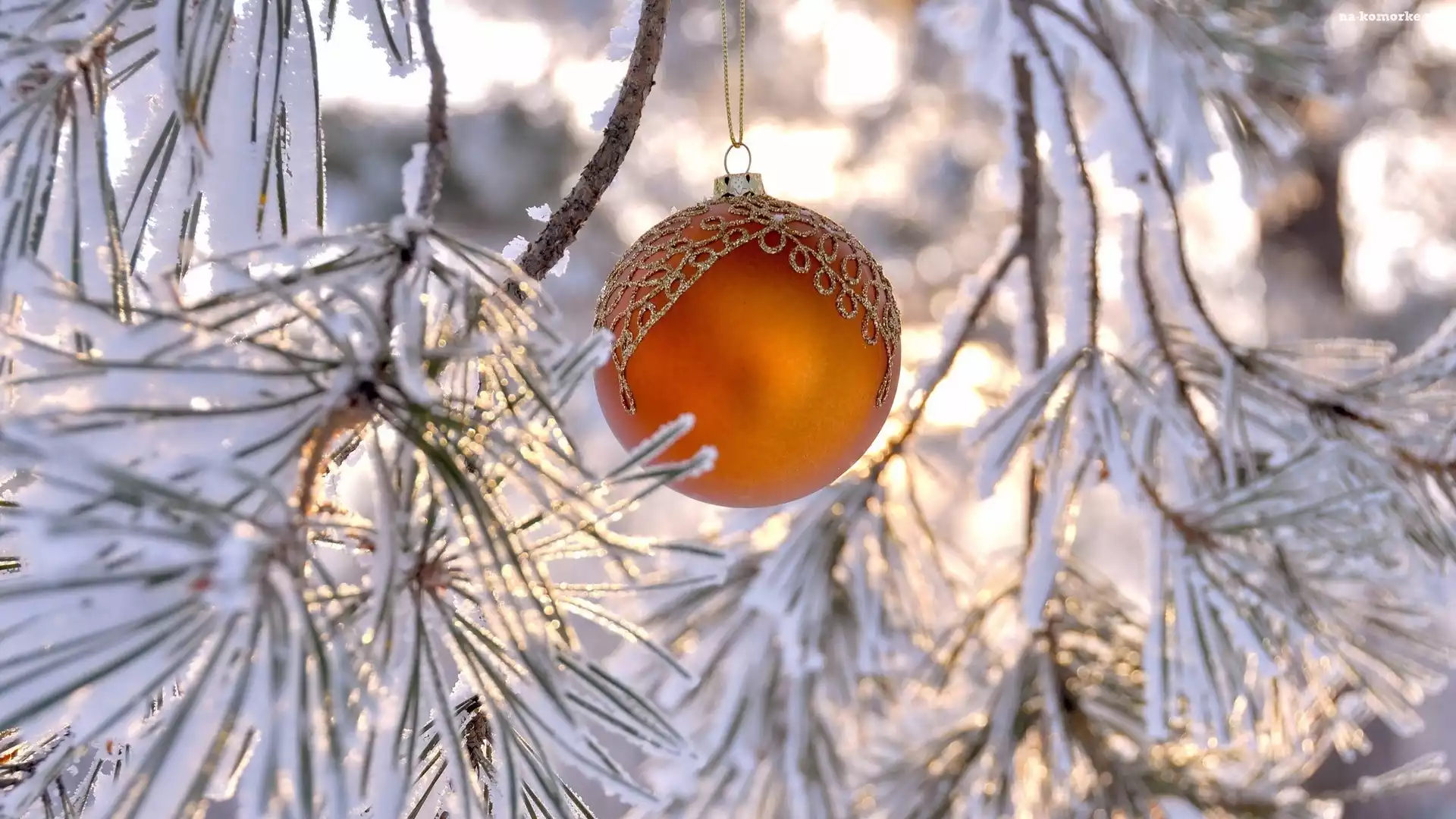Bokeh, Bombka, Ośnieżone, Gałęzie, Rozmycie na Komórkę