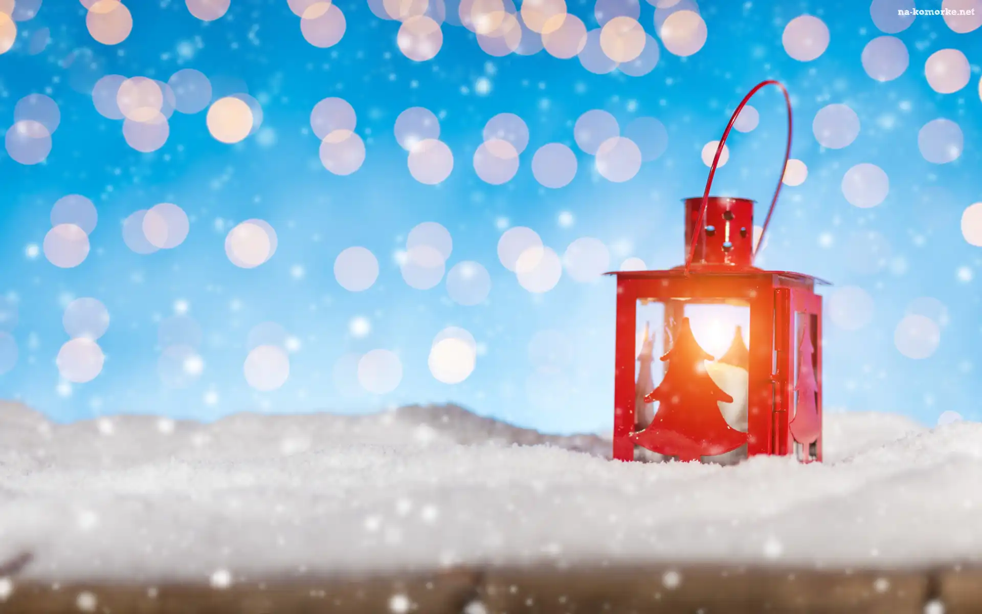 Bokeh, Czerwony, Świąteczny, Lampion, Śnieg na Komórkę