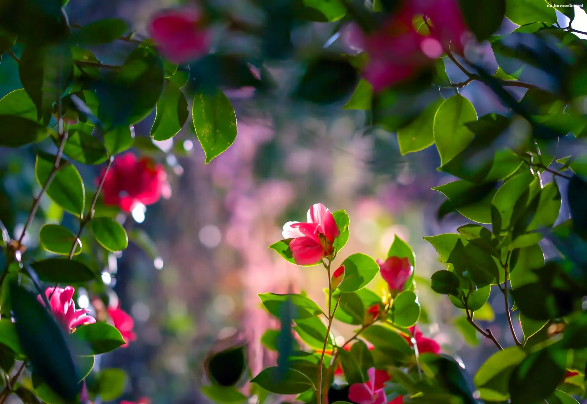 Bokeh, Kamelia, Kwiaty, Światło, Liście na Komórkę