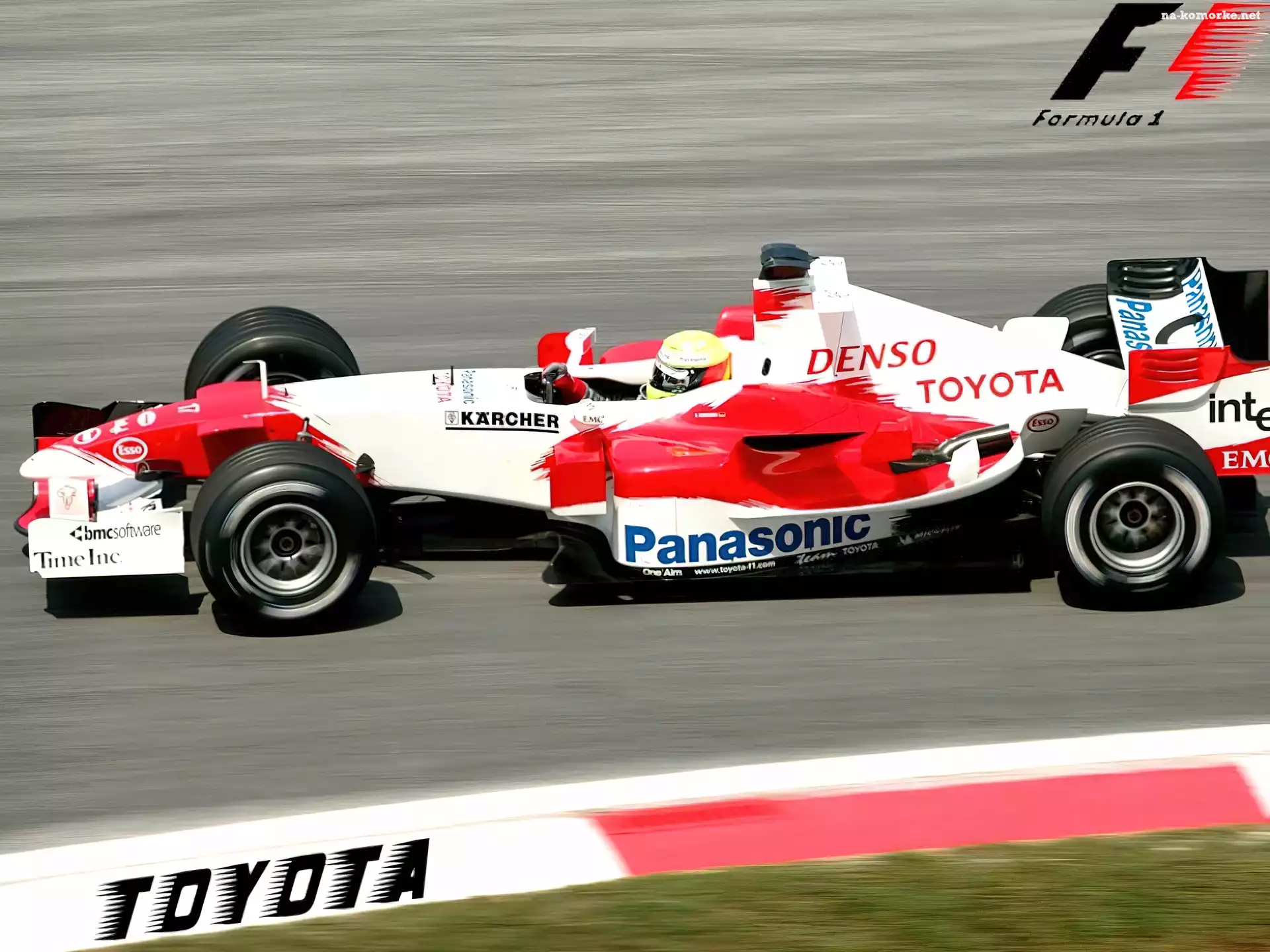 kask , bolid, Formuła 1, spojler, opony, koła na Komórkę