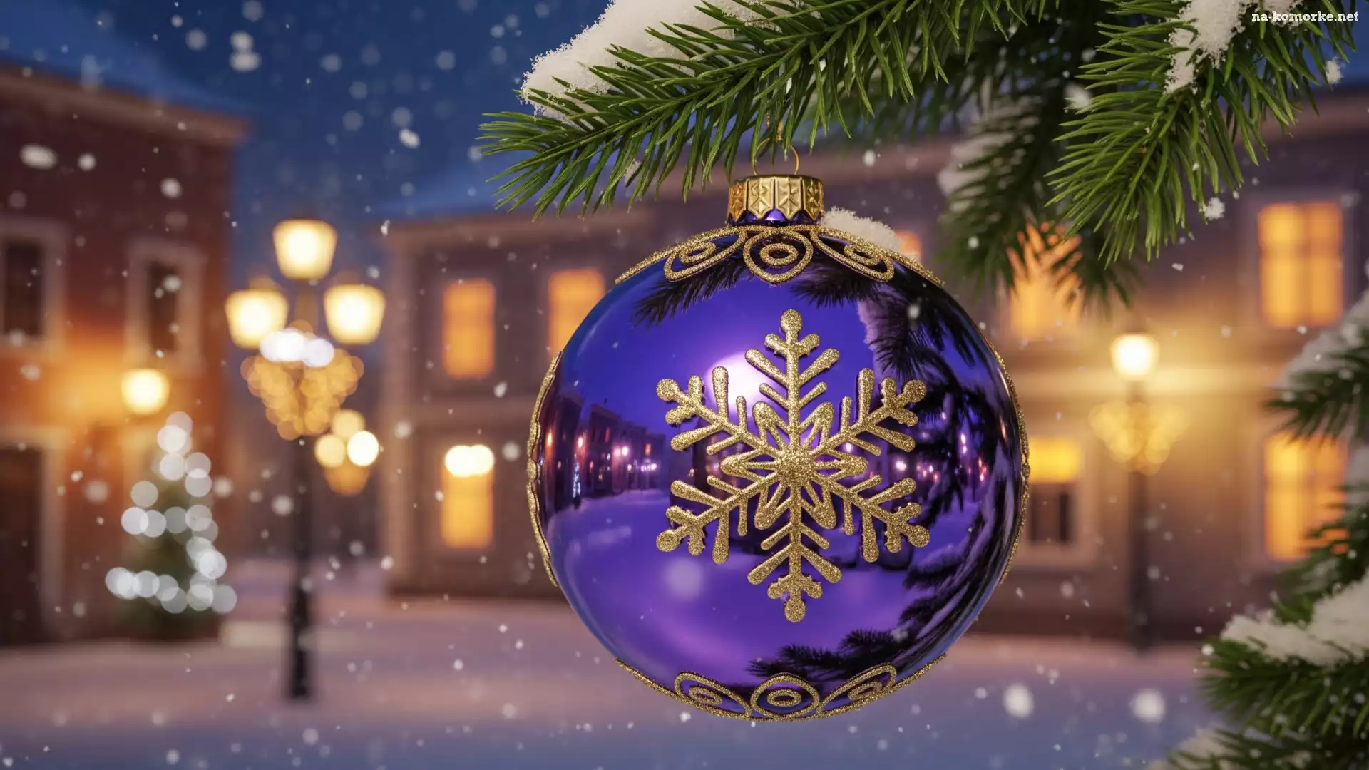 Fioletowa, Gałązka, Ośnieżona, Bombka, Boże Narodzenie na Komórkę