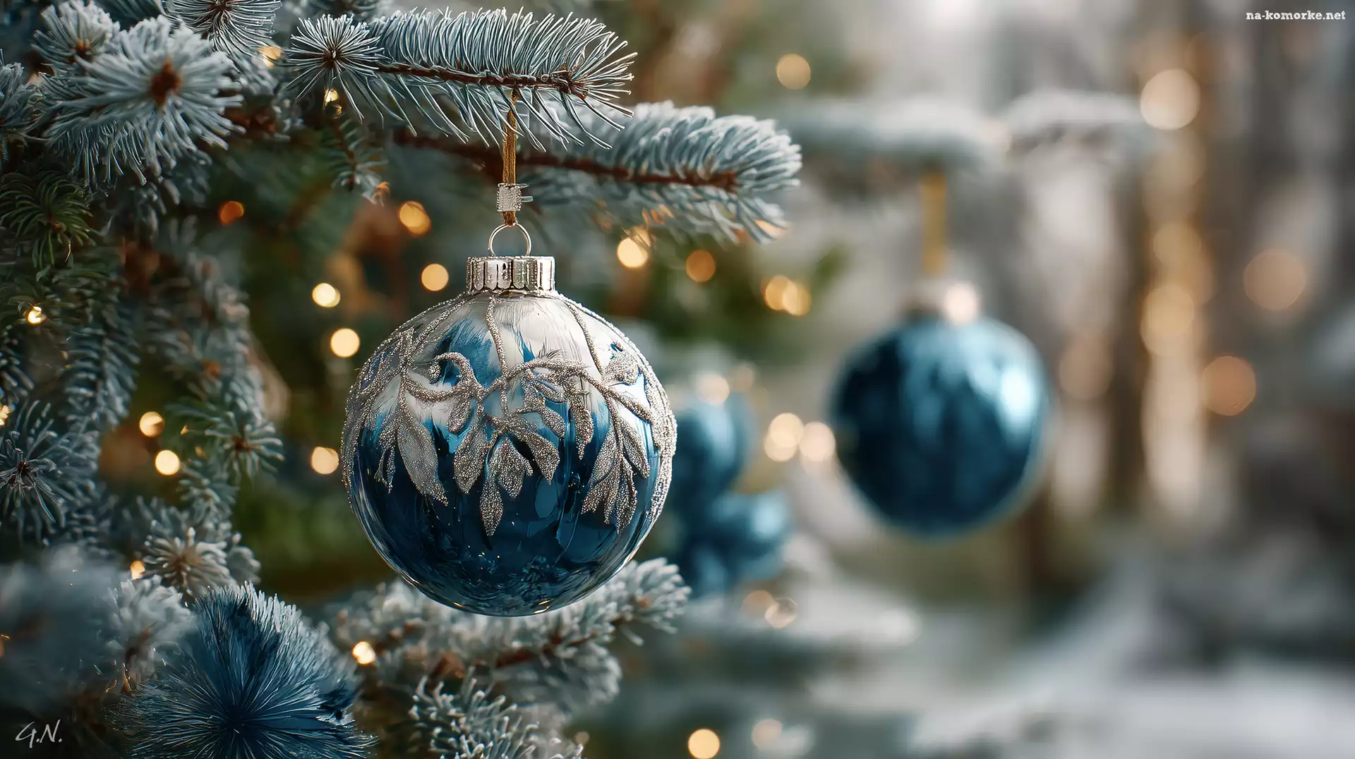 Boże Narodzenie, Niebieska, Świerka, Grafika AI, Gałązki, Bombka na Komórkę