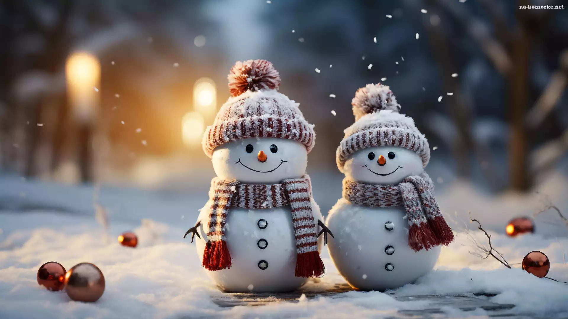 Śnieg, Dwa, Szaliki, Bombki, Czapki, Bałwanki na Komórkę