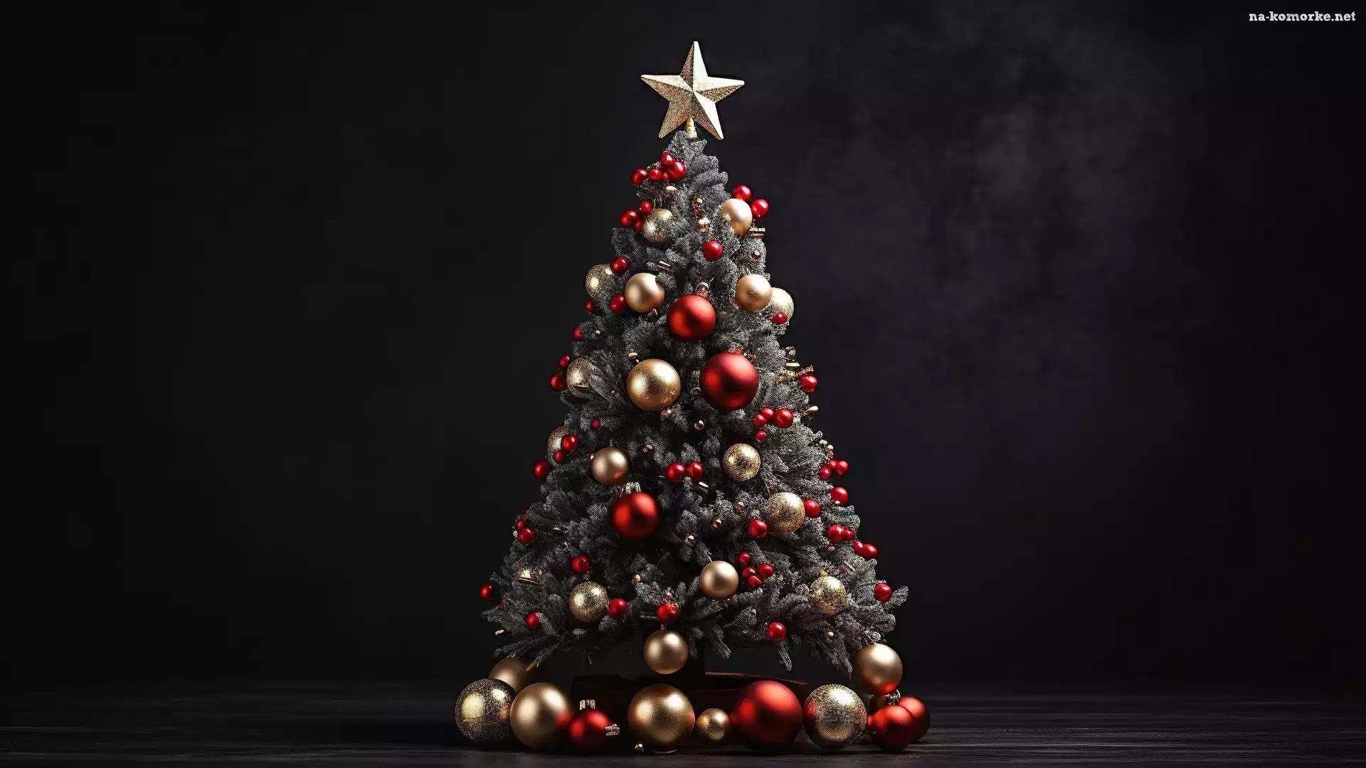 Bombki, Gwiazda, Boże Narodzenie, Ciemne tło, Czerwone, Srebrne, Choinka na Komórkę