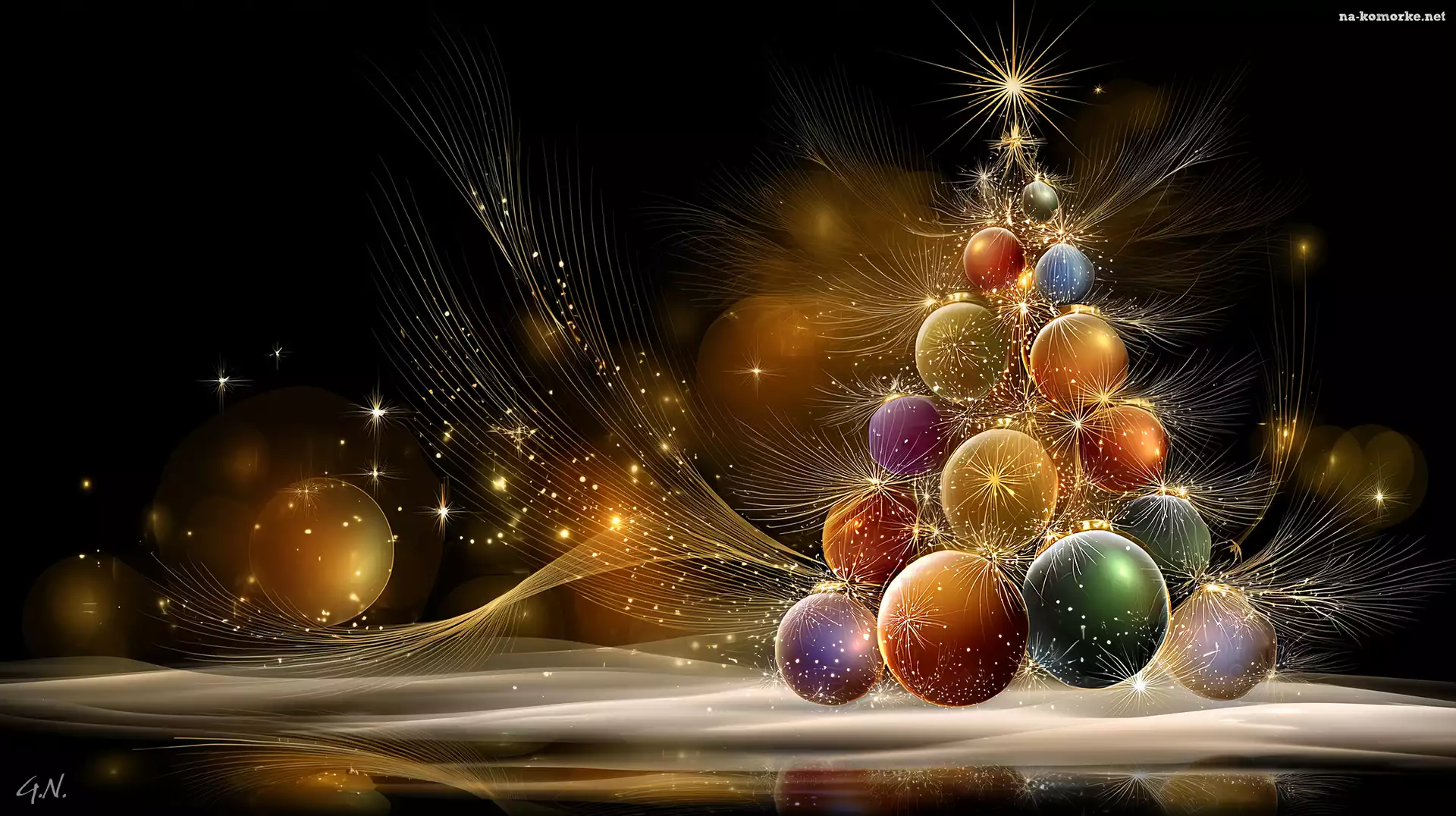 Boże Narodzenie, Kolorowe, Bombki, Choinka, Grafika AI na Komórkę