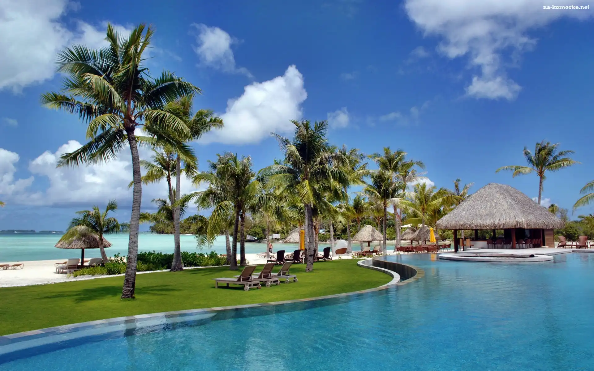 Bora Bora, Ocean, Palmy, Basen, Kurort na Komórkę