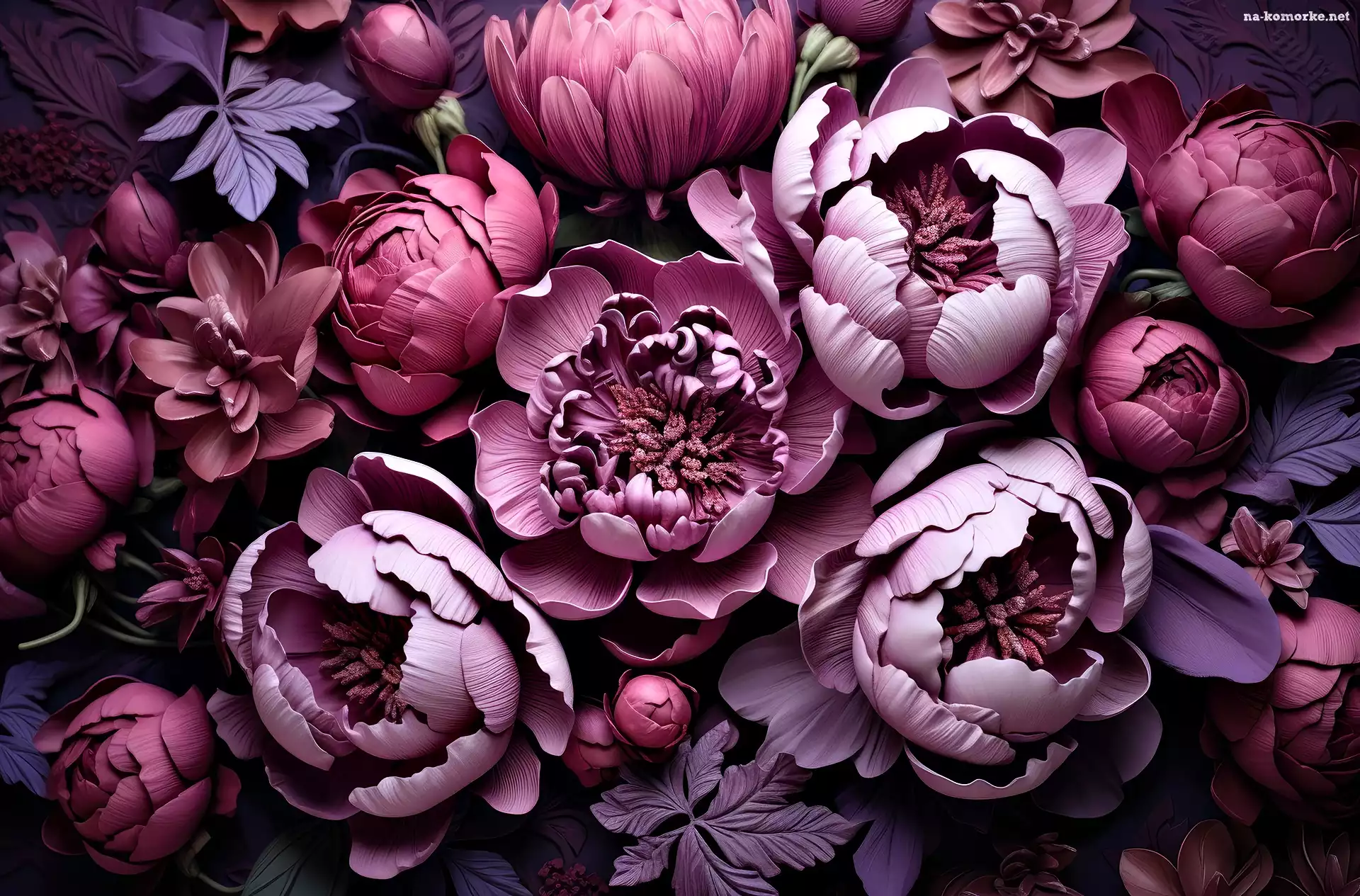 Kwiaty, Grafika, Piwonie, Bordowe na Komórkę