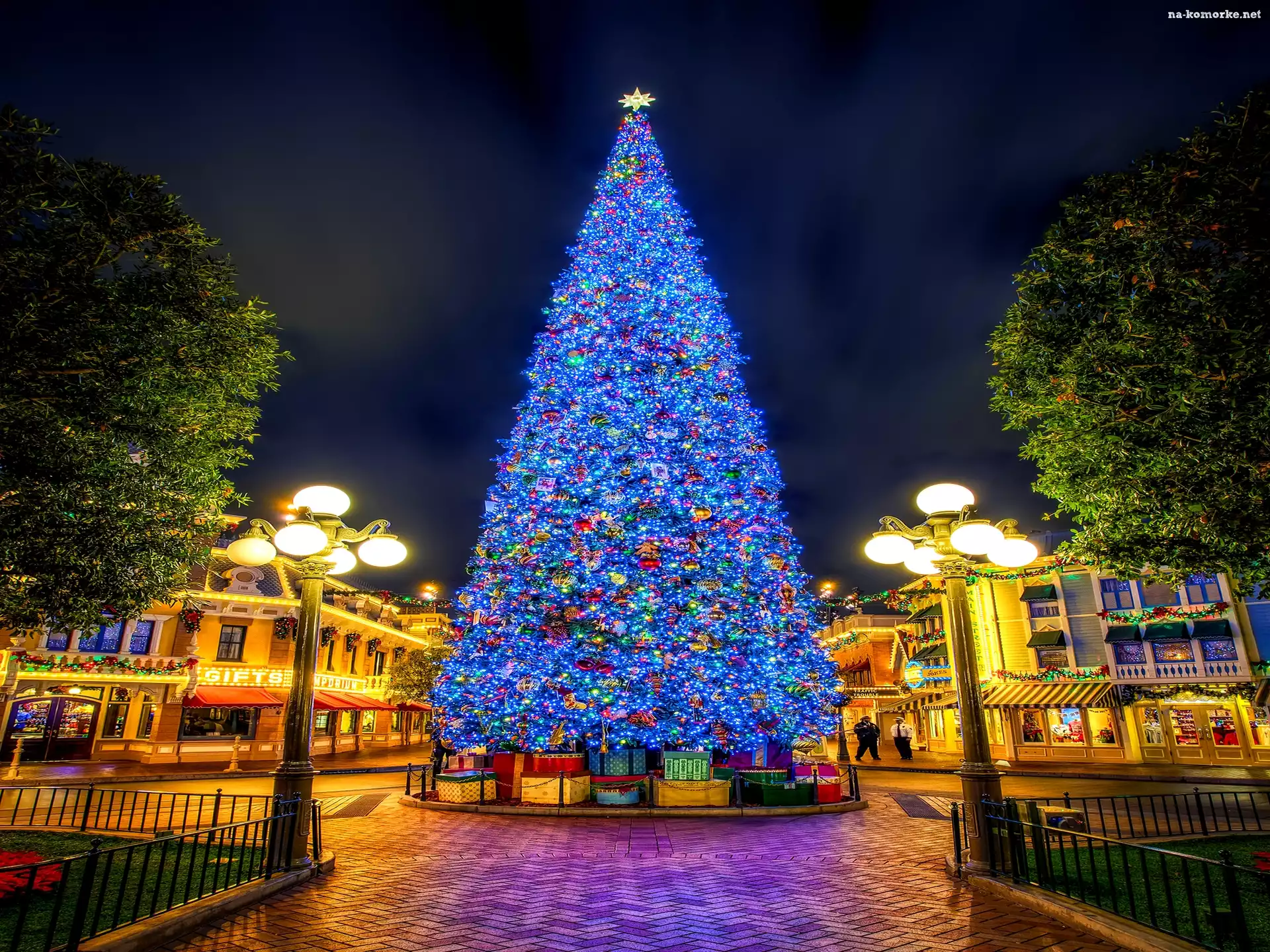 Boże Narodzenie, Budynki, Choinka, Oświetlenie na Komórkę