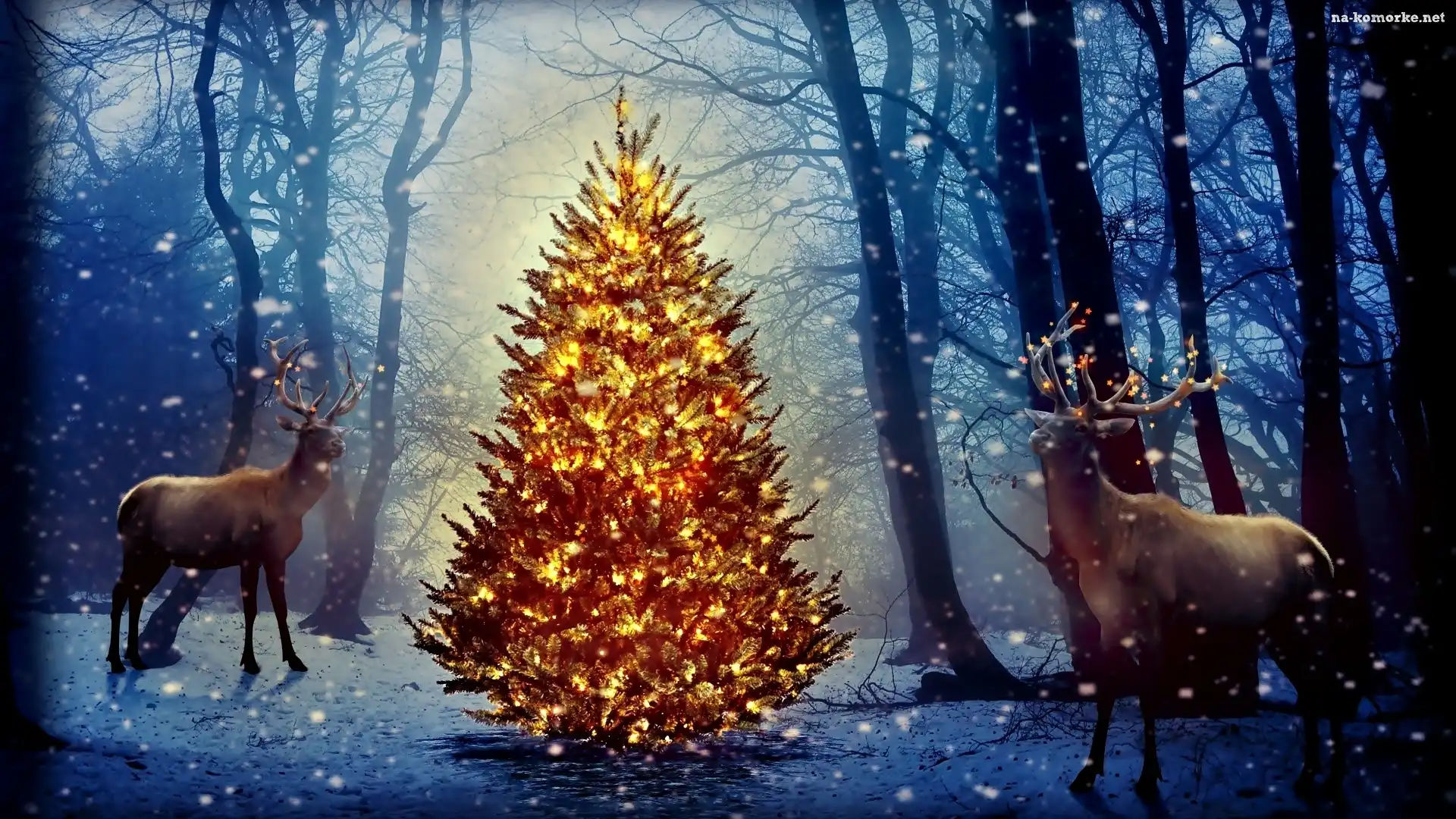 Boże Narodzenie, Śnieg, Choinka, Jelenie na Komórkę