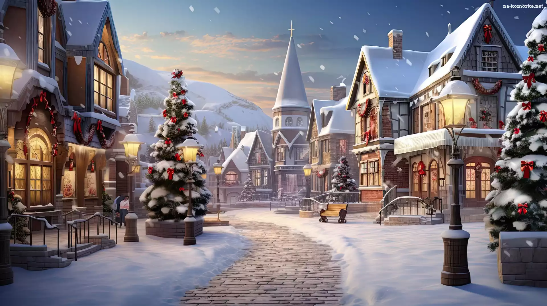Zima, Ulica, Domy, Boże Narodzenie, Choinki na Komórkę