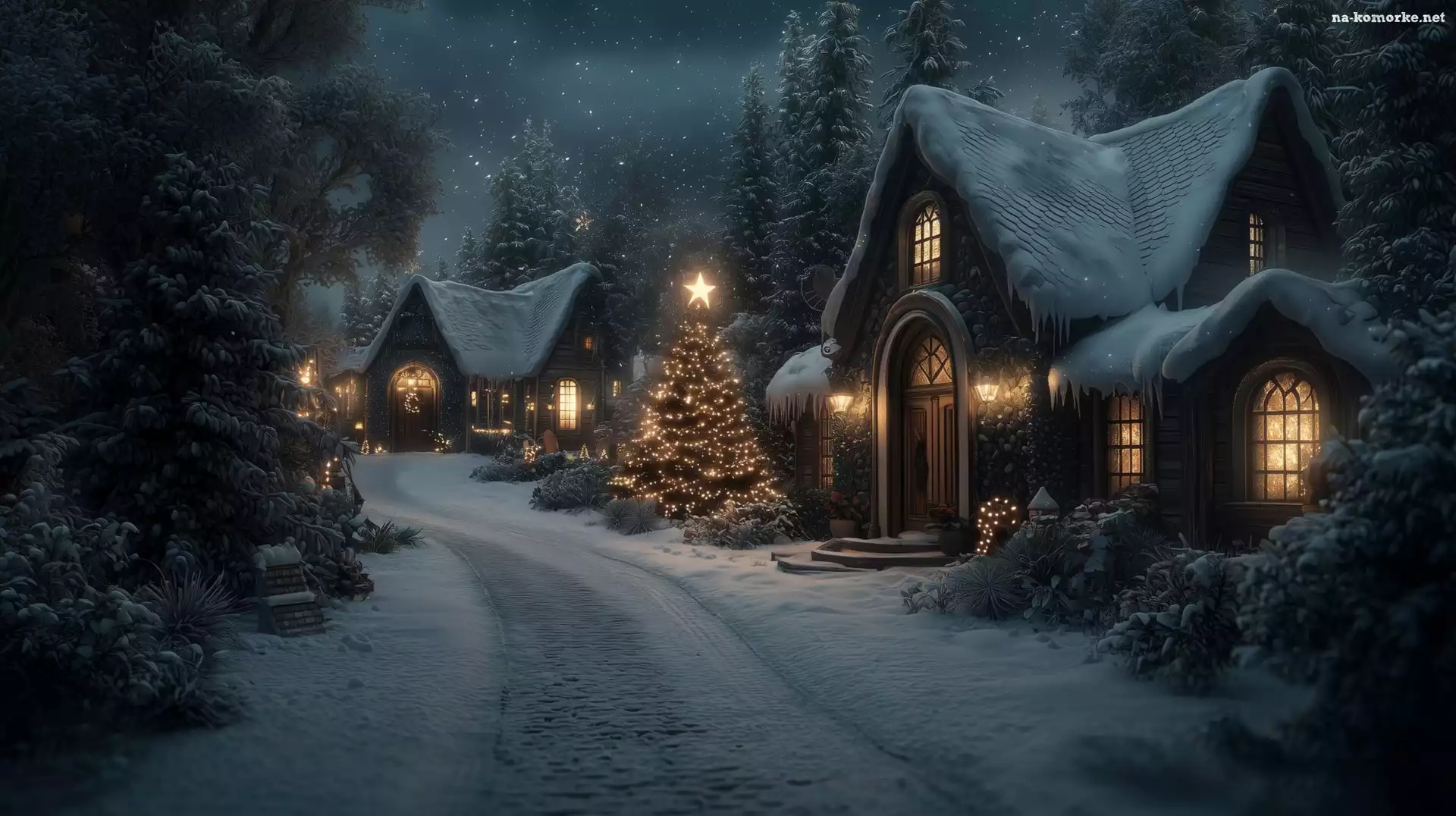 Zima, Noc, Choinka, Boże Narodzenie, Domy na Komórkę