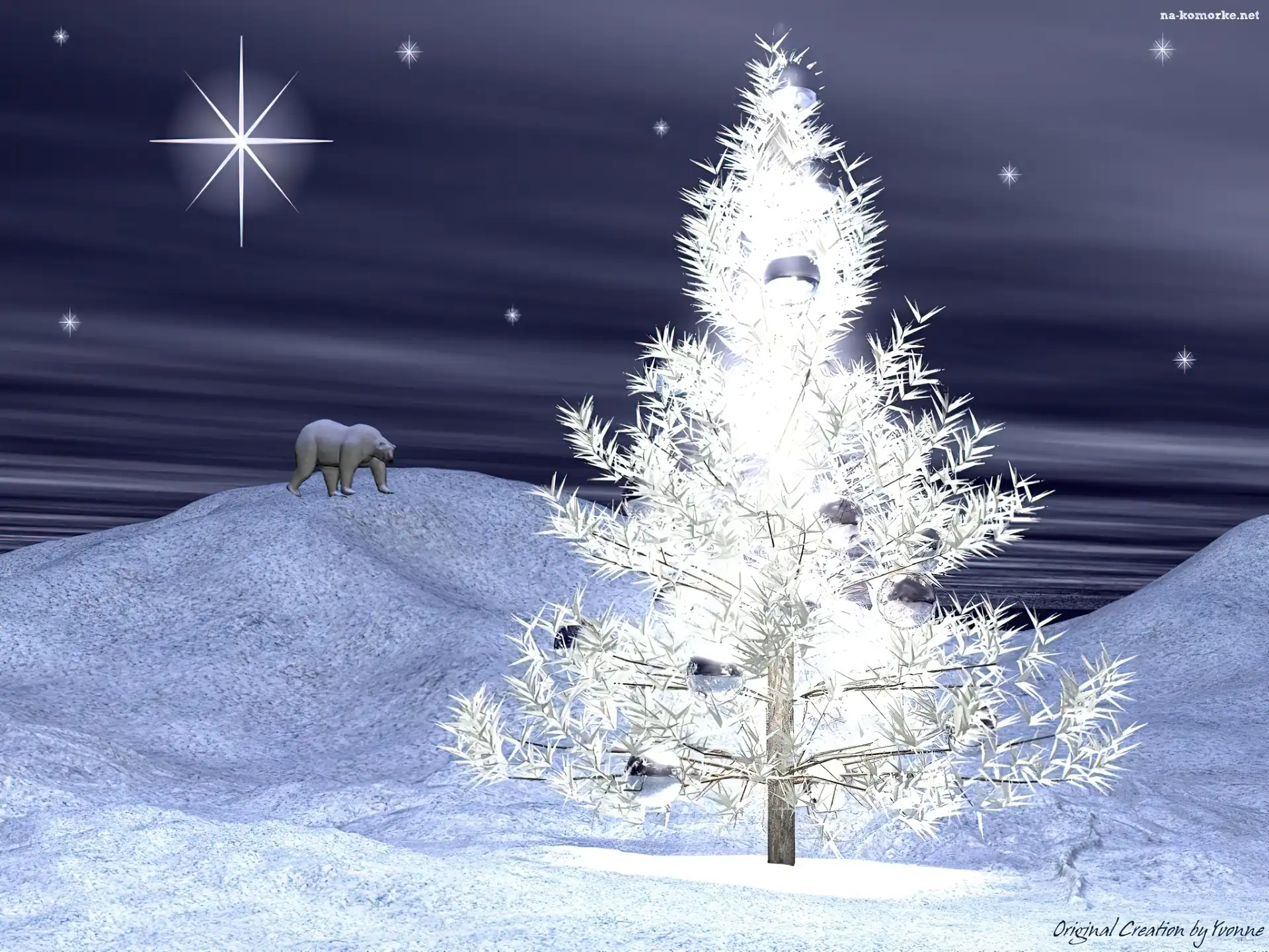 Boże Narodzenie, choinka, pierwsza gwiazdka, niedźwiedź na Komórkę