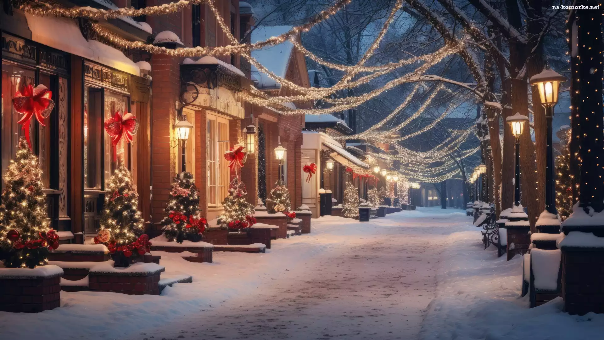 Domy, Zima, Latarnie, Boże Narodzenie, Dekoracje, Ulica na Komórkę