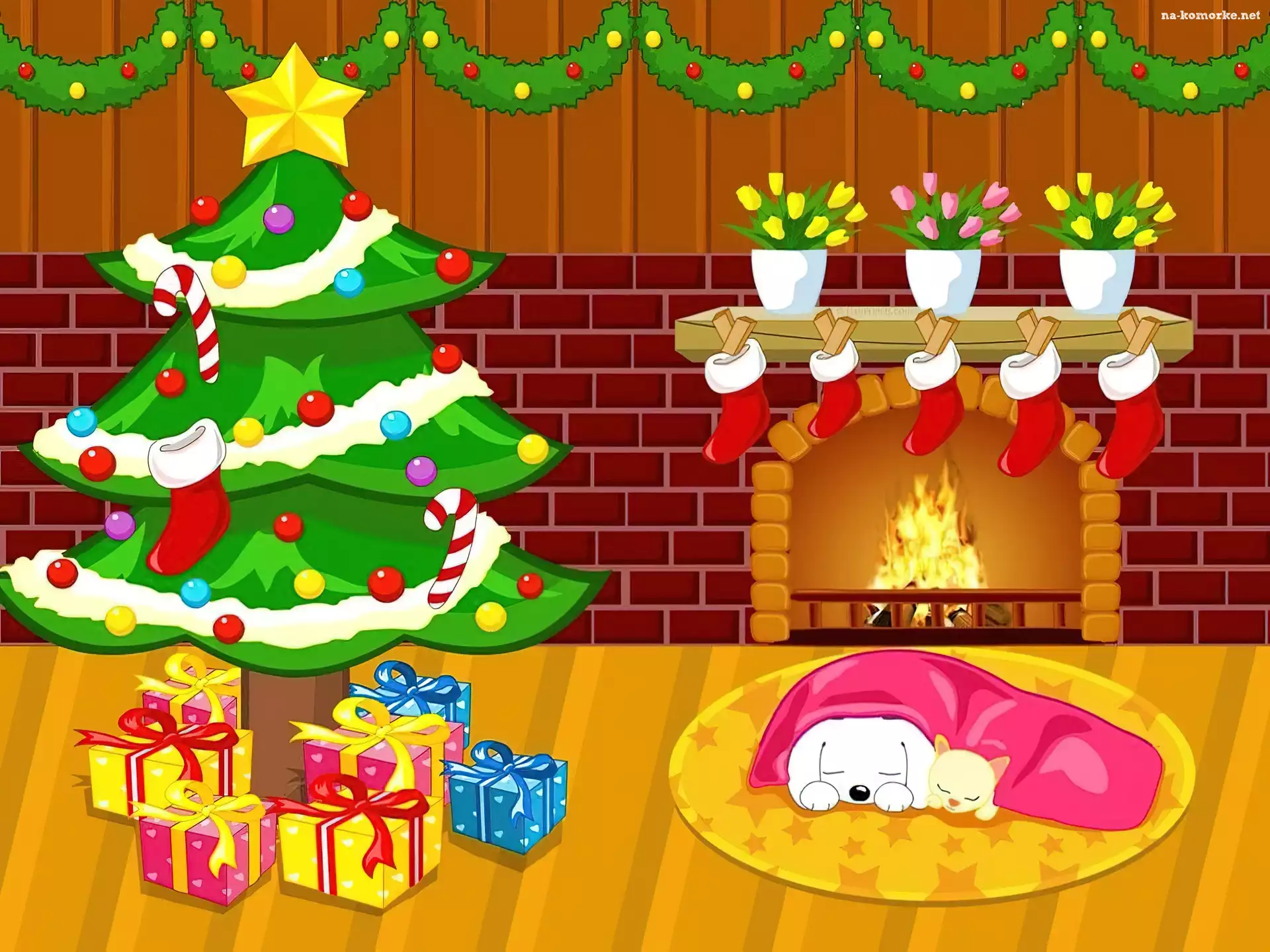 Boże Narodzenie, piesek, choinka na Komórkę
