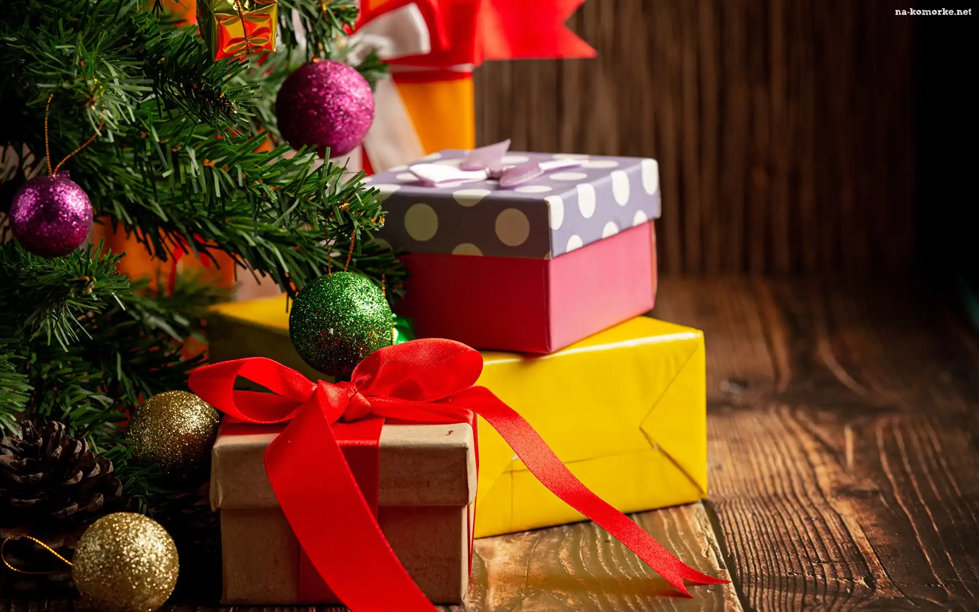 Boże Narodzenie, Choinka, Bombki, Prezenty, Kokardy na Komórkę