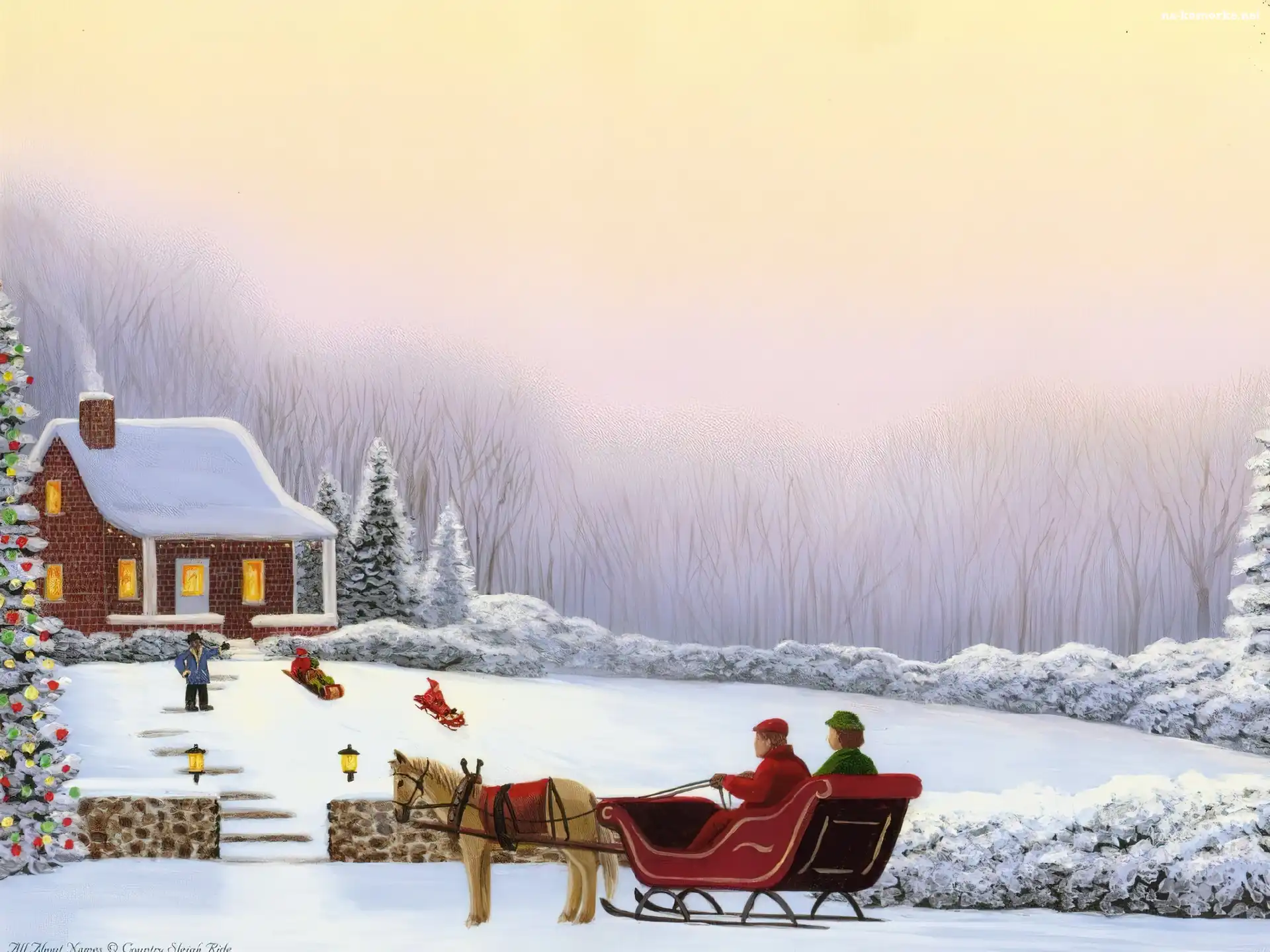 Boże Narodzenie, zima , sanie na Komórkę