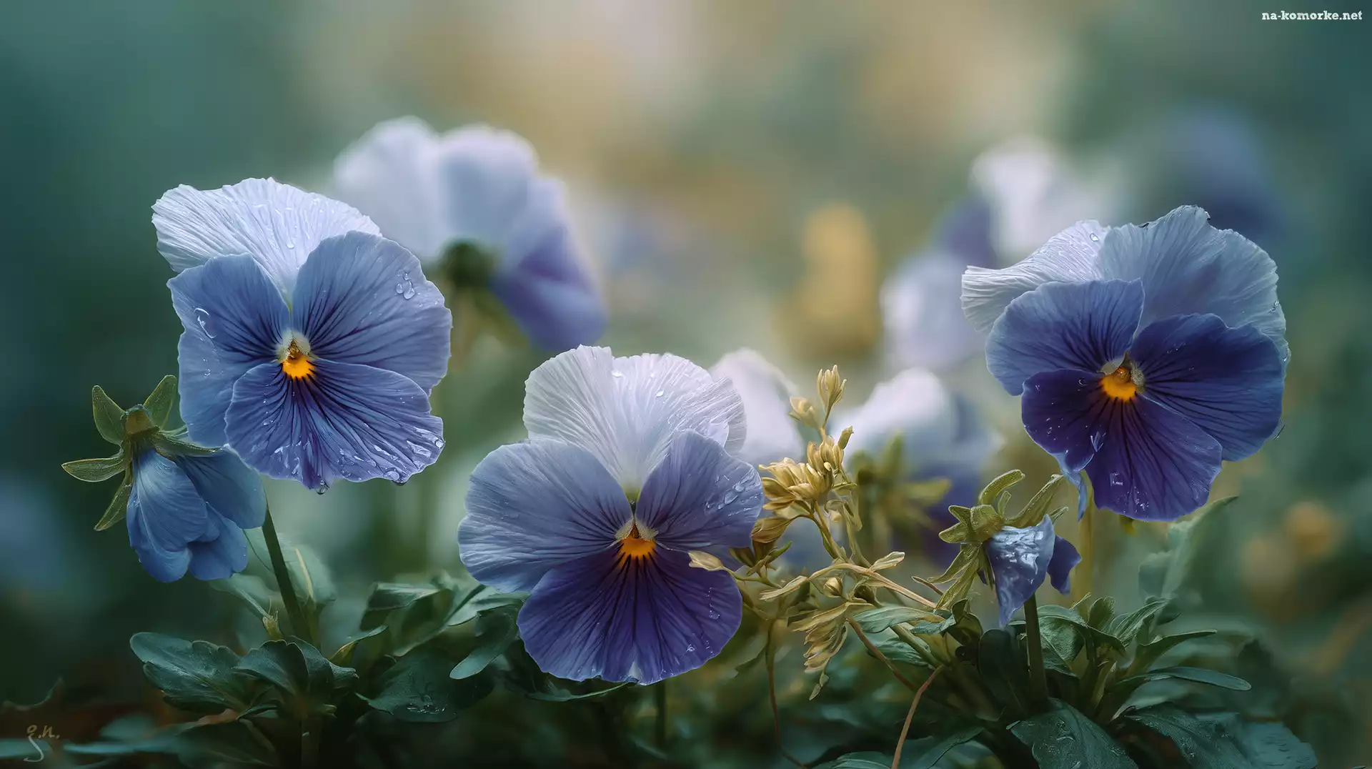 Niebieskie, Kwiaty, Pąki, Bratki, Grafika AI na Komórkę