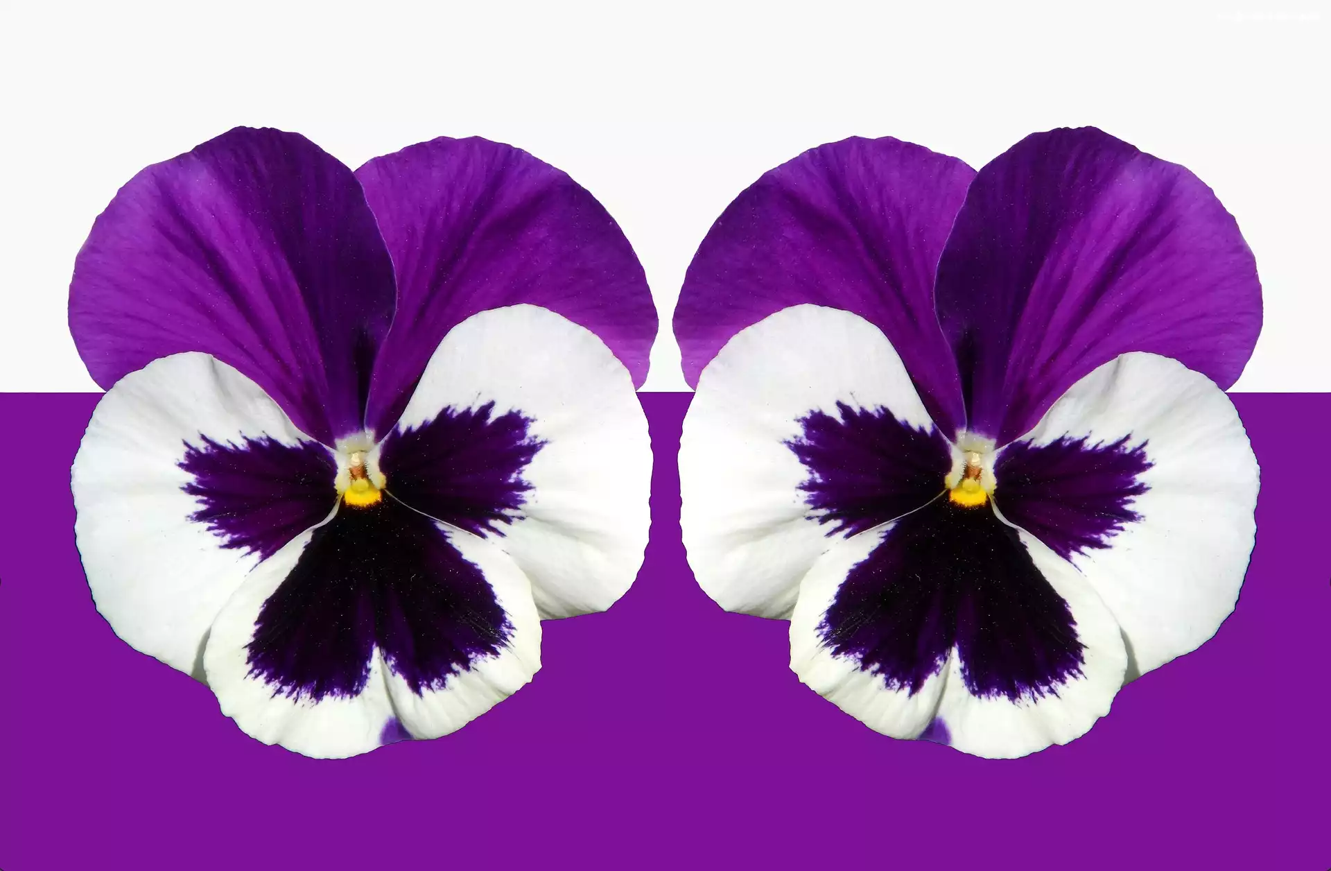 Fioletowo-białe, Zbliżenie, Bratki na Komórkę