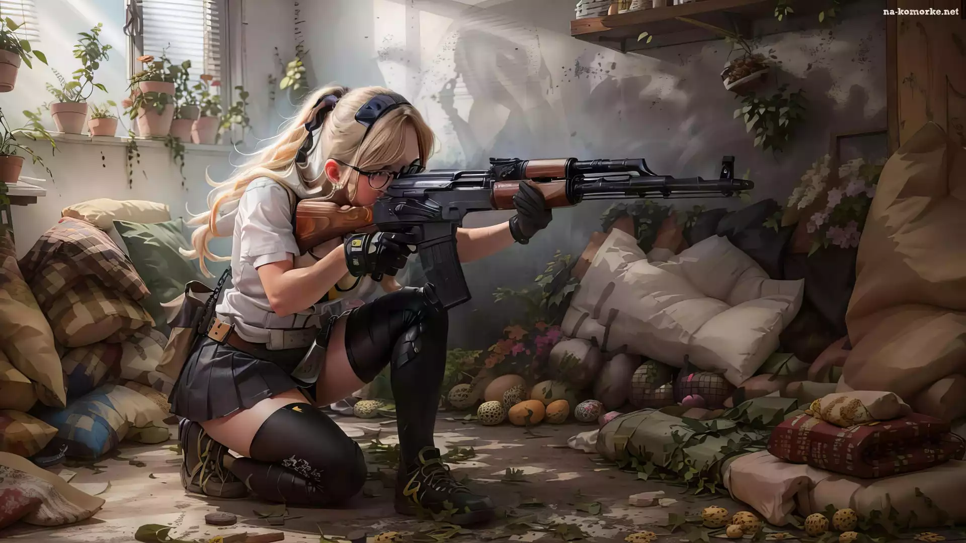Dziewczyna, Broń, Karabin, Blondynka, Grafika na Komórkę