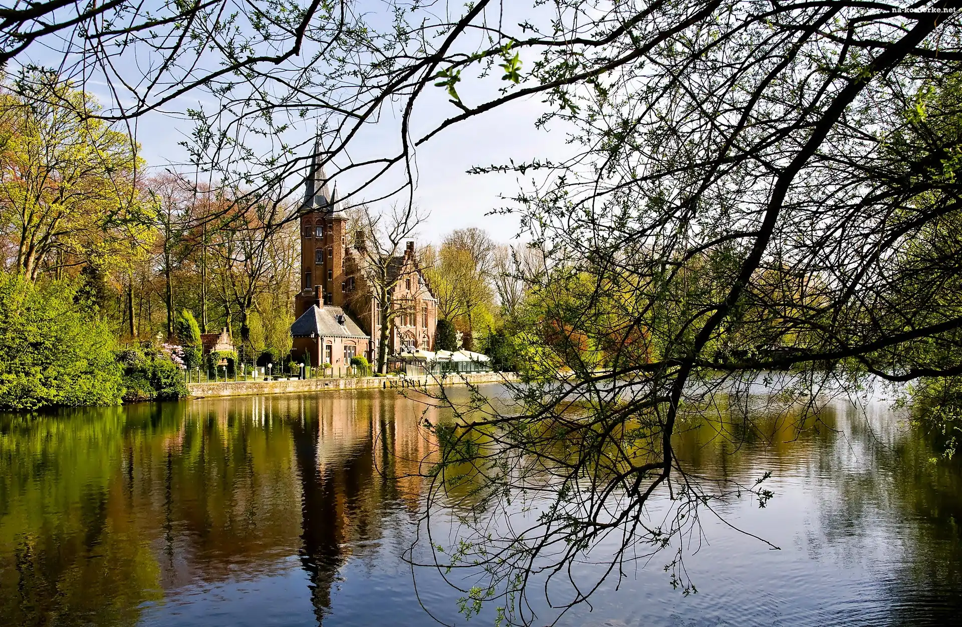 Jezioro, Belgia, Brugia, Hotel, Chateau de Spycker na Komórkę