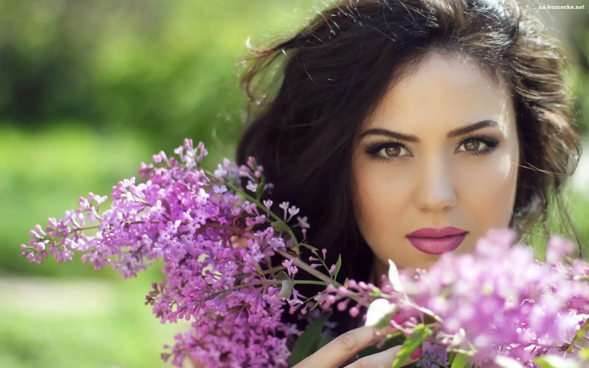 Brunetka, Bez, Makijaż, Park na Komórkę