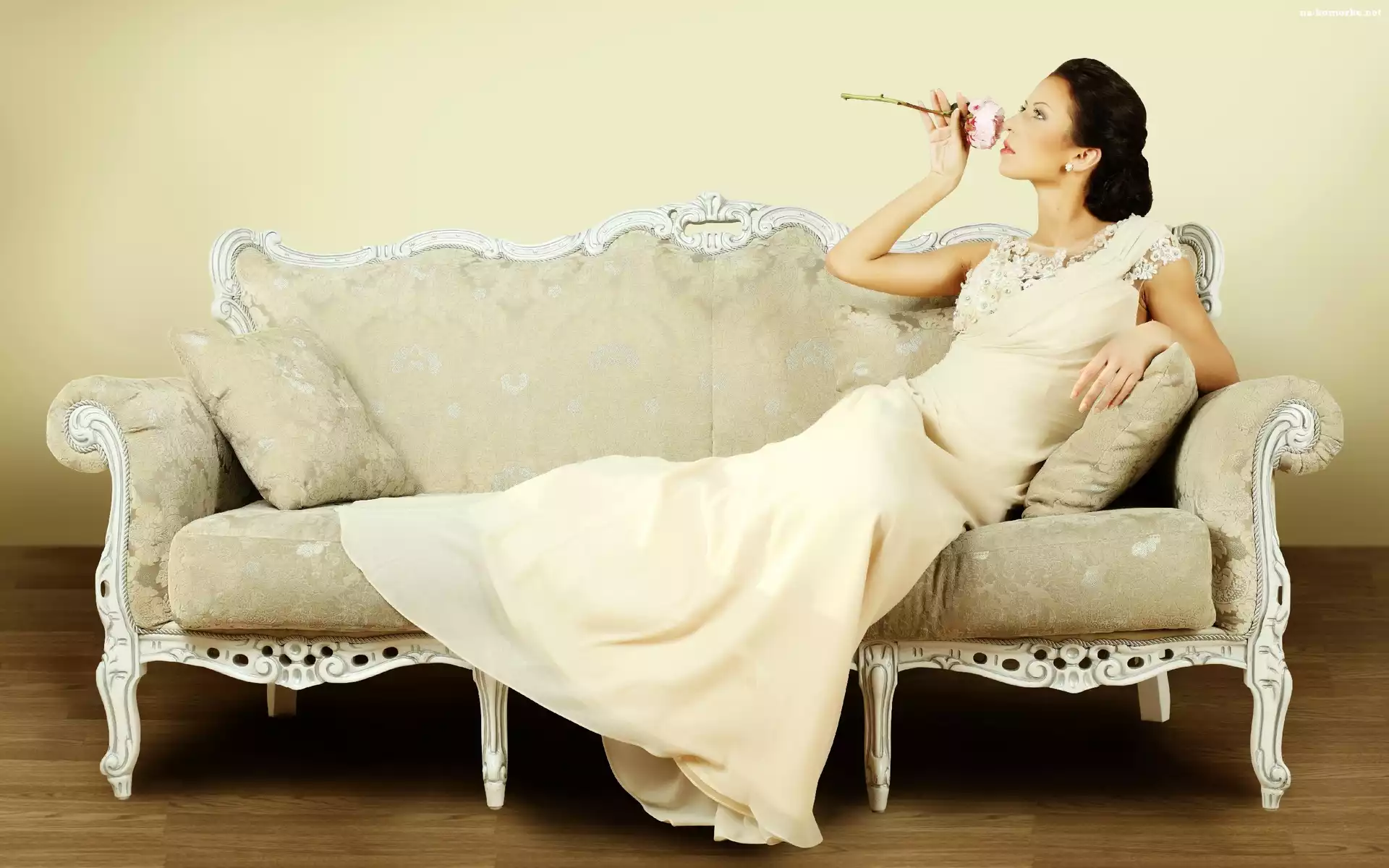 Brunetka, Sofa, Modelka, Róża na Komórkę