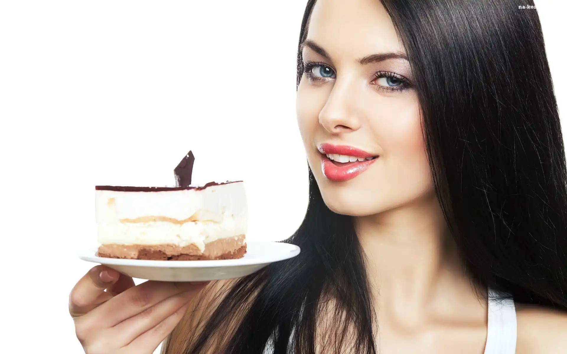 Piękna, Brunetka, Ciastko na Komórkę