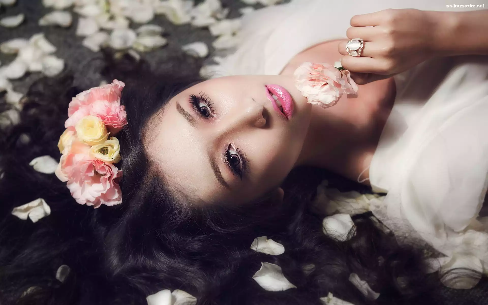 Brunetka, Makijaż, Płatki, Róż na Komórkę