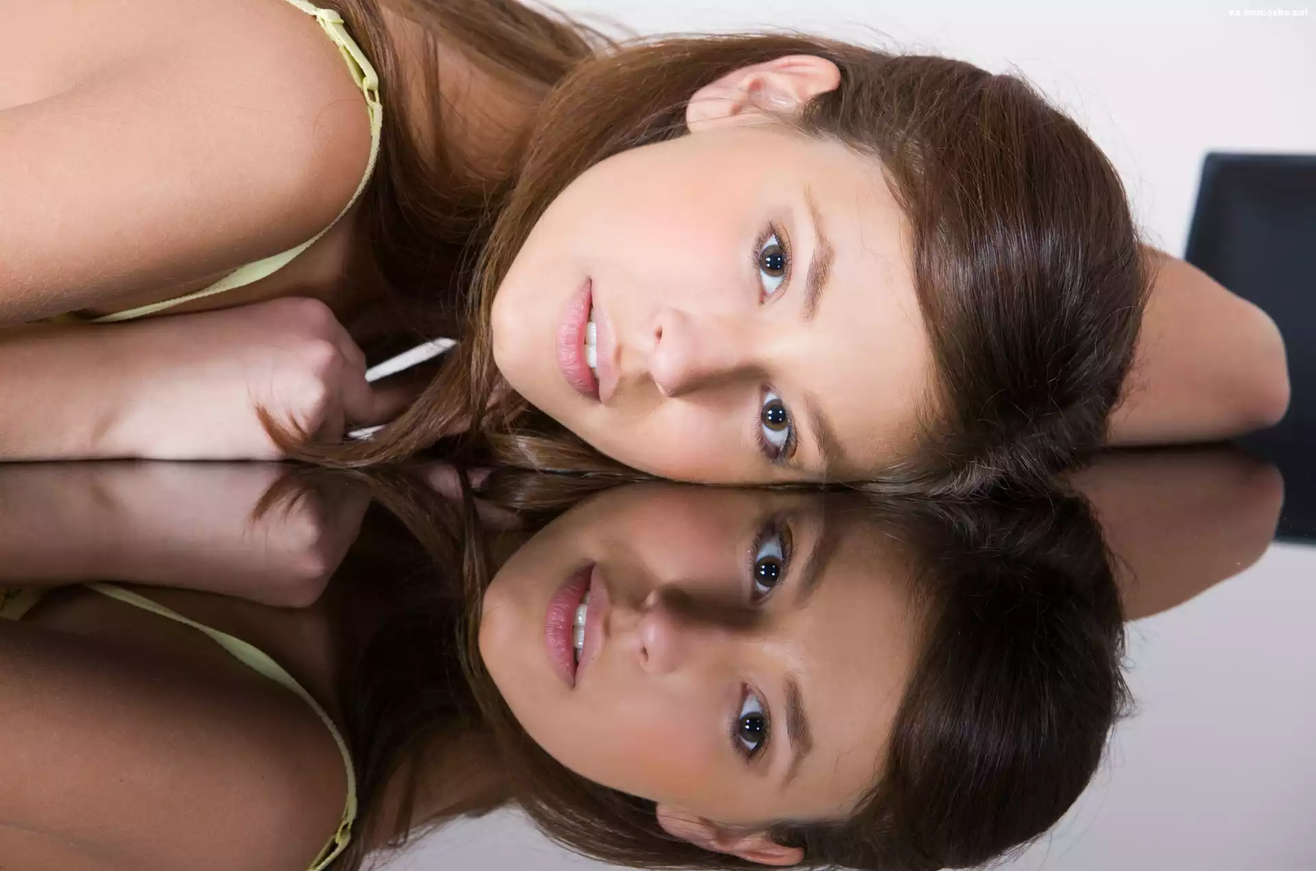 Brunetka, Makijaż, Spojrzenie, Odbicie na Komórkę